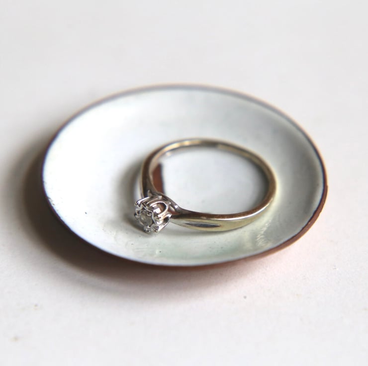 Beautiful white ring bowl measuring 5cm diameter, with the letter L
