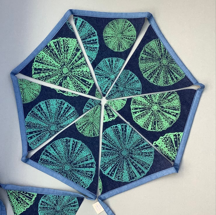 I have made this original handprinted and crafted bunting using my original sea anemone design.