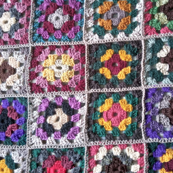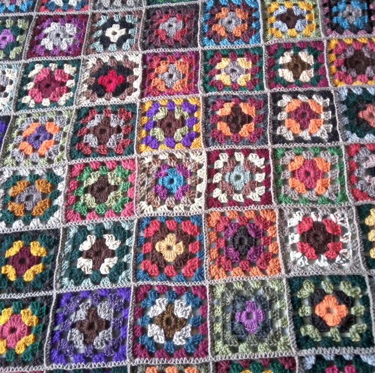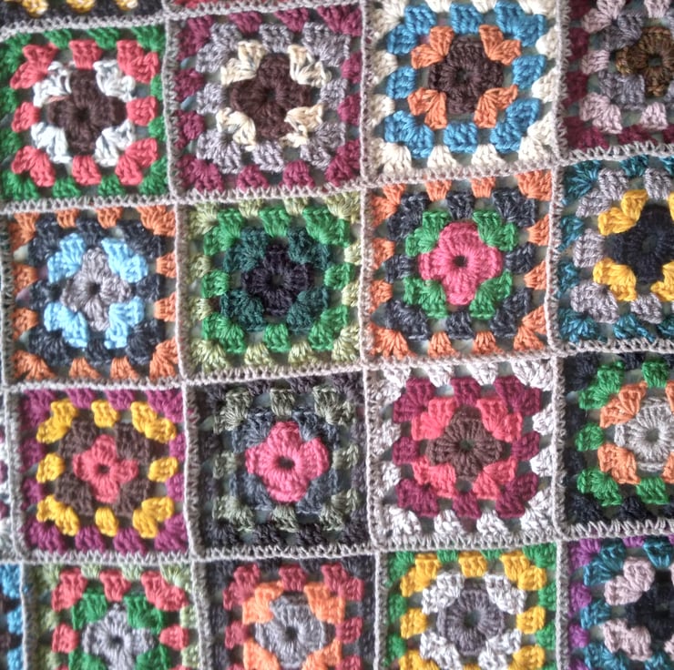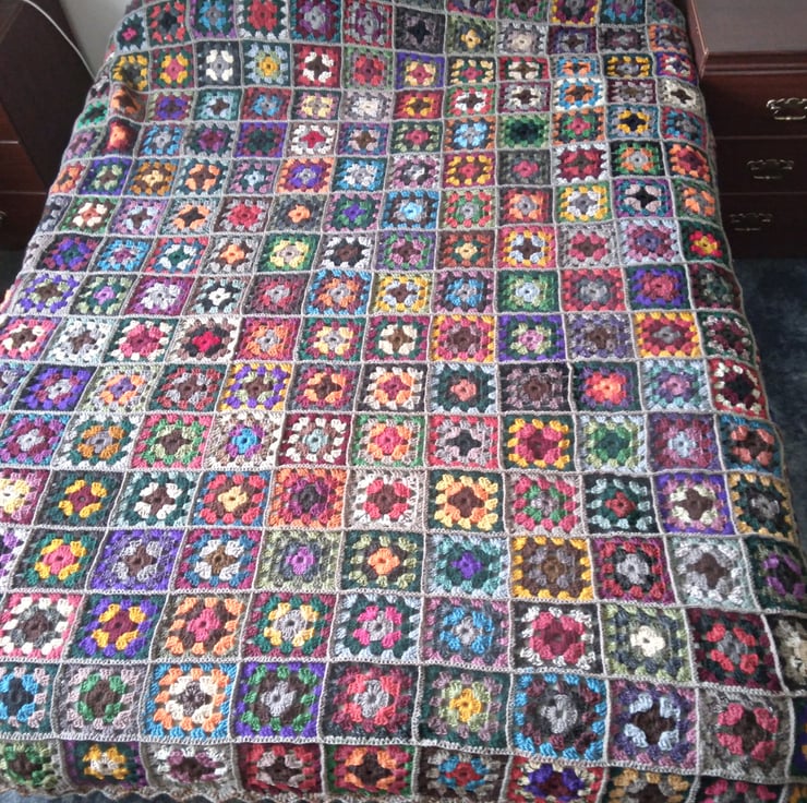 Crochet Granny Squares Blanket, King Size, Autumn colours