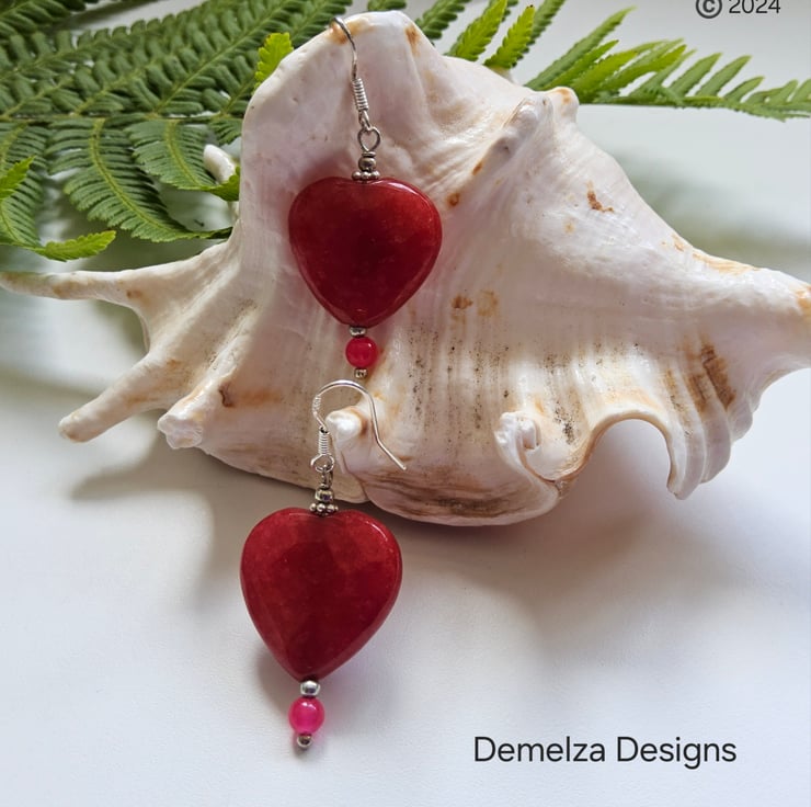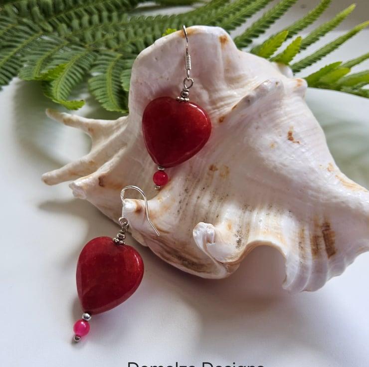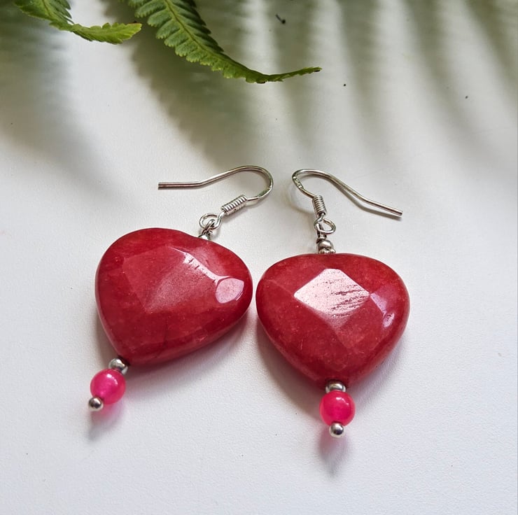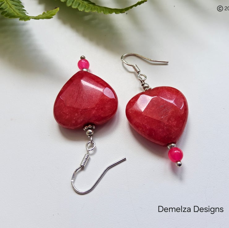 A lovely statement pair of earrings hand crafted using 15mm faceted heart cut quartzite gemstones complimented with 4mm pink quartzite rounds. These earrings will make a perfect gift for a loved one on valentines day.