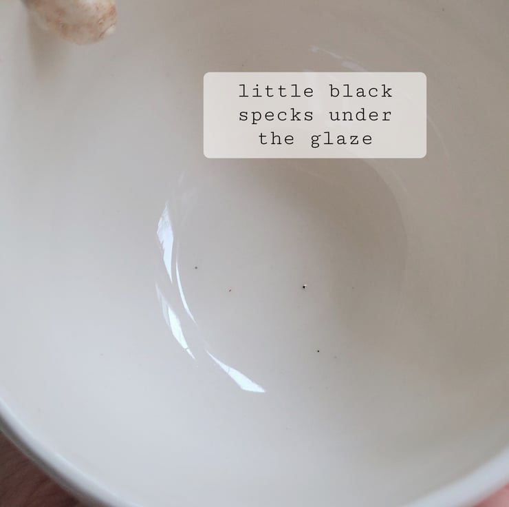 In the SALE due to tiny black specks under the glaze on the inside base. This doesn't affect usage.