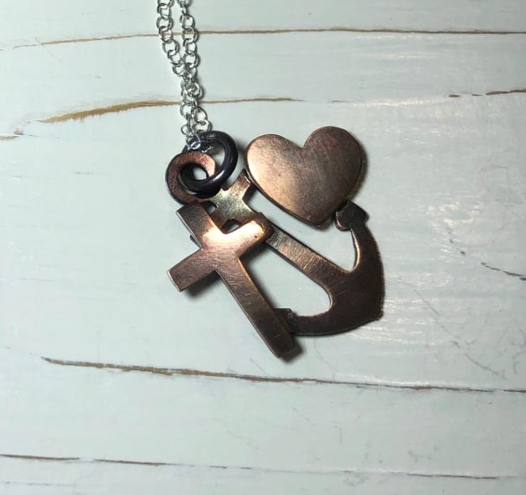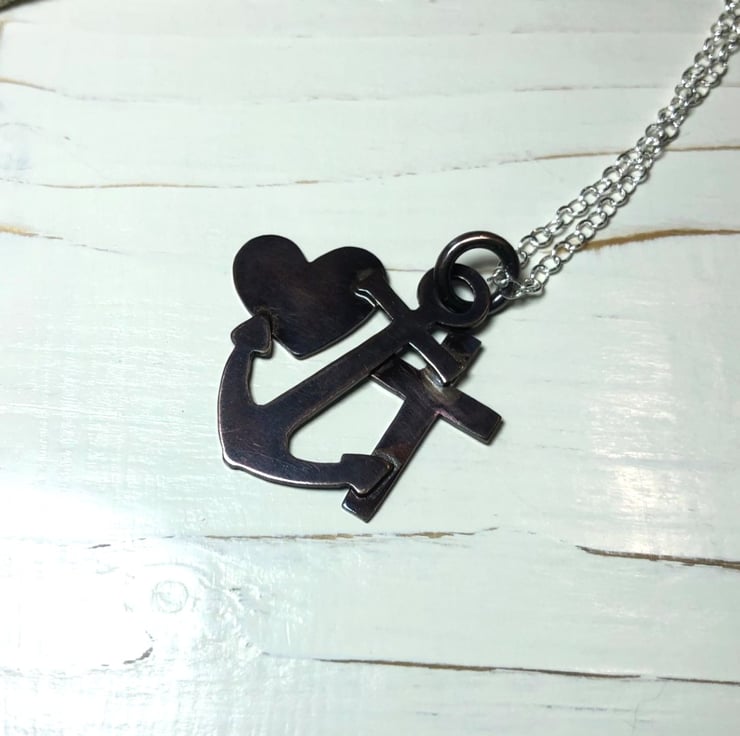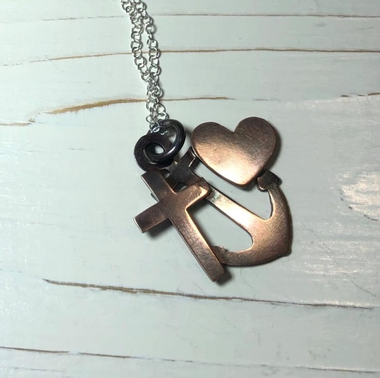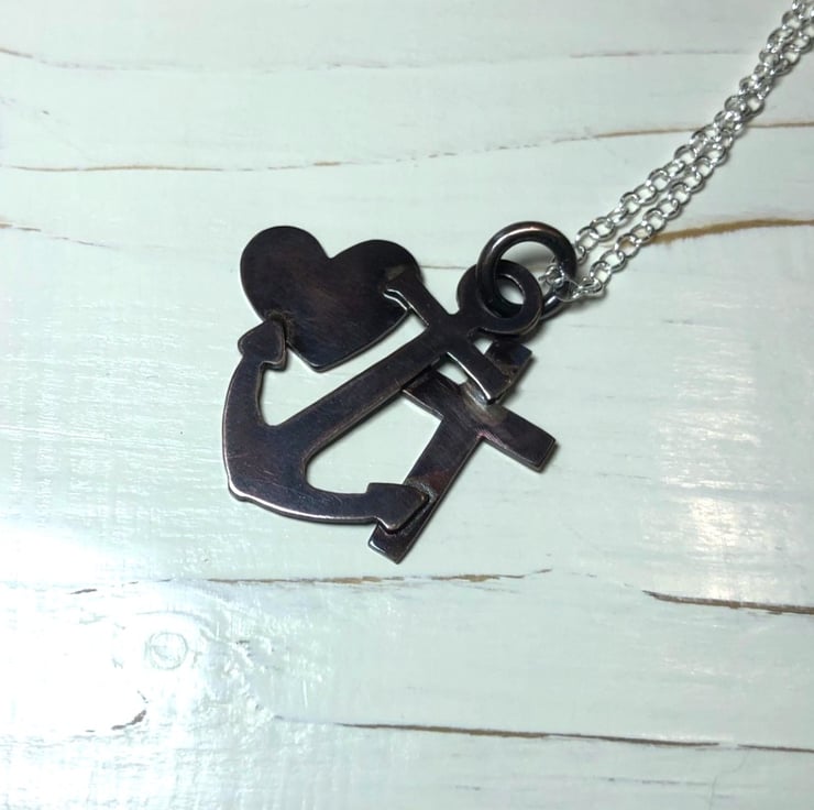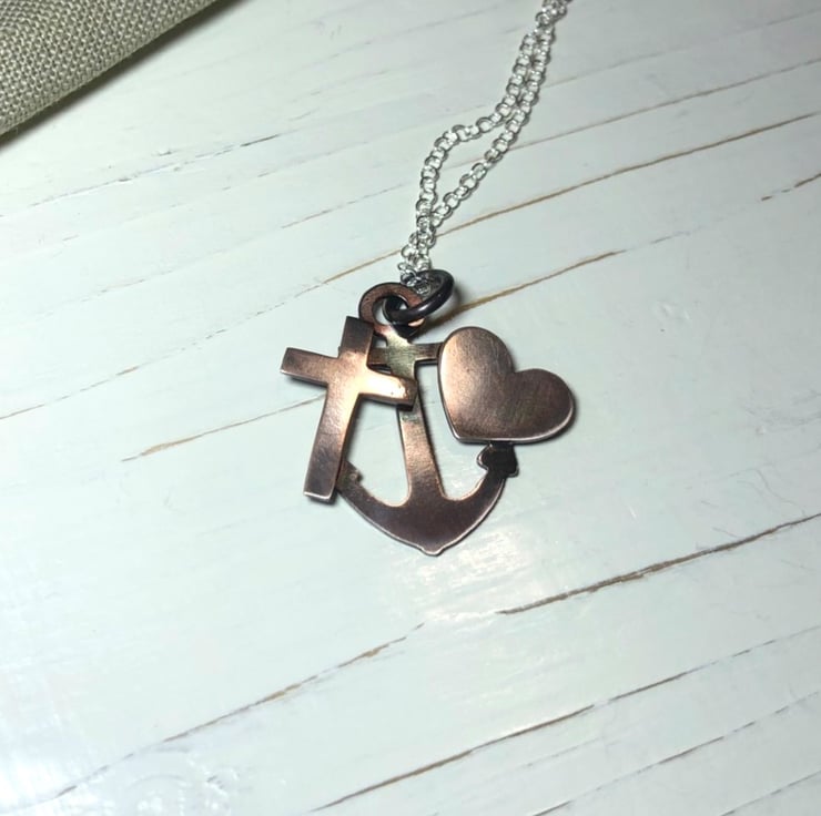 Faith Hope & Charity Pendant in Bronze with silver chain. The surface has been patinated to add interest, this patination will change beautifully with handling and will take on a charm all of it's own from the oils in your skin.