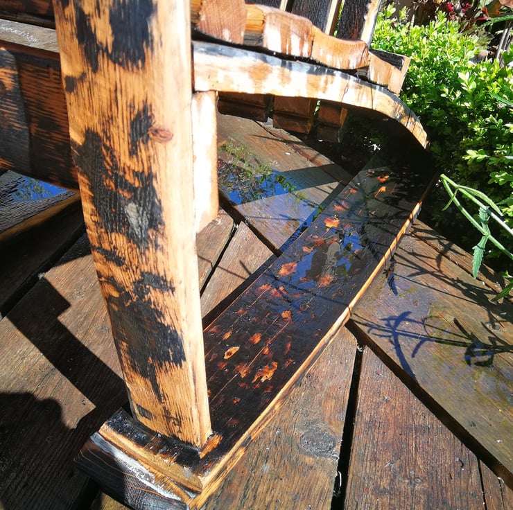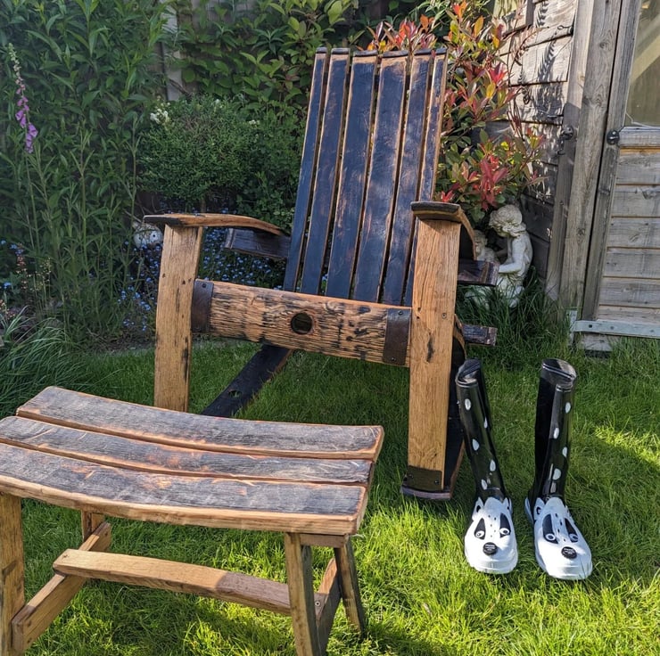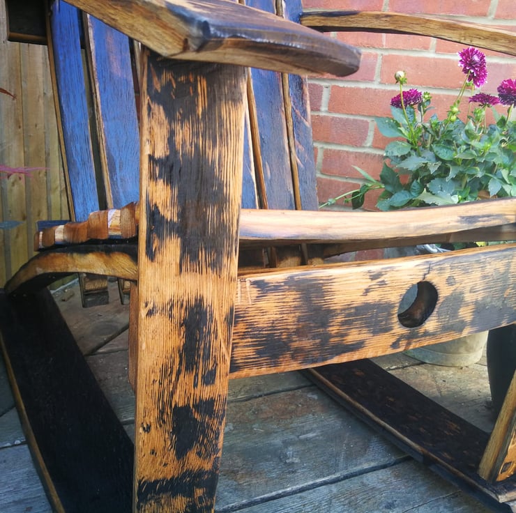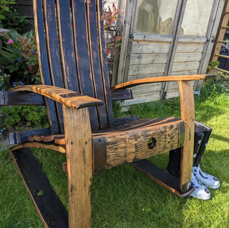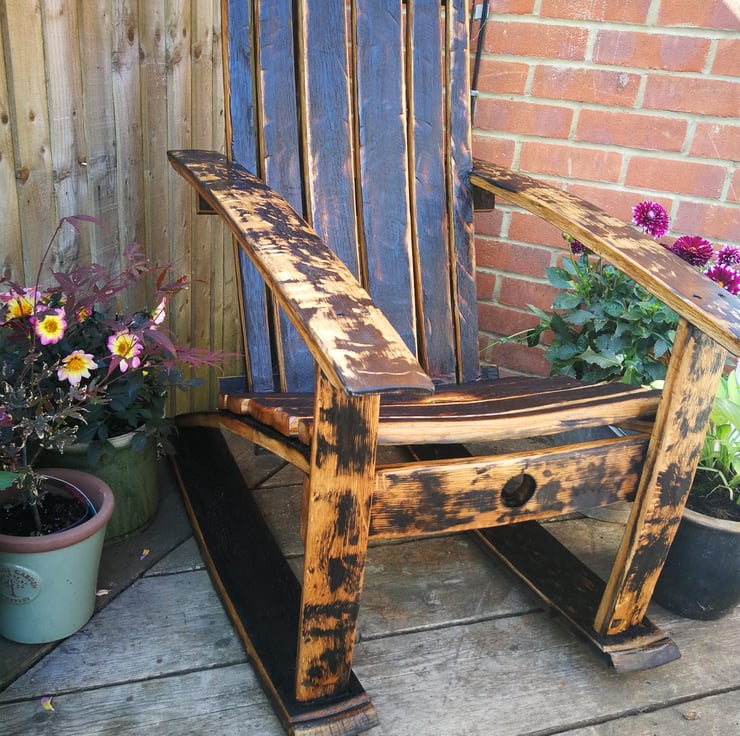 Would you believe it takes a full whisky barrel to make these chairs? Perfect for inside or out.