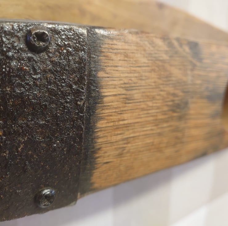 On the end of each oak stave you might see the shape of the wood is different. These notches are cut into the wood which held onto the barrel lid