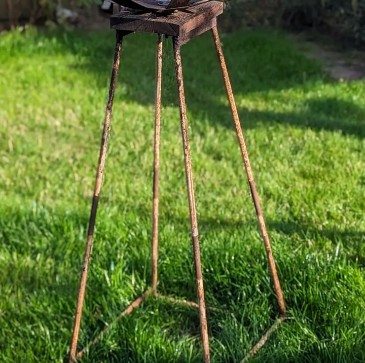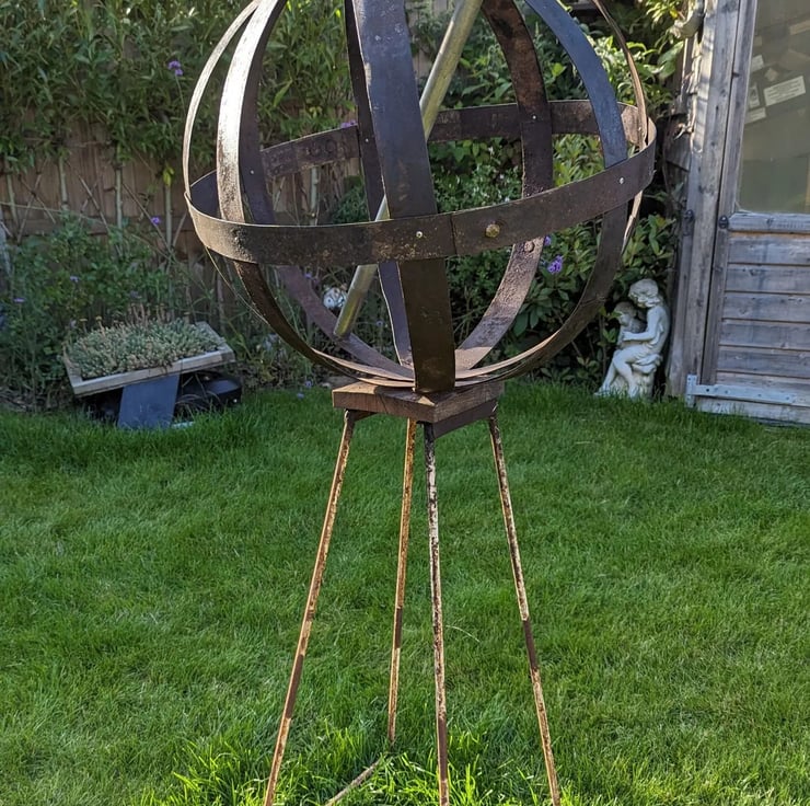 No barrel oak on this creation but we have loads of barrel hoops. Intertwing a fair few of the hoops i've made this beautiful garden orb. The base is rustic tarnished metal salvaged from a vintage plant stand