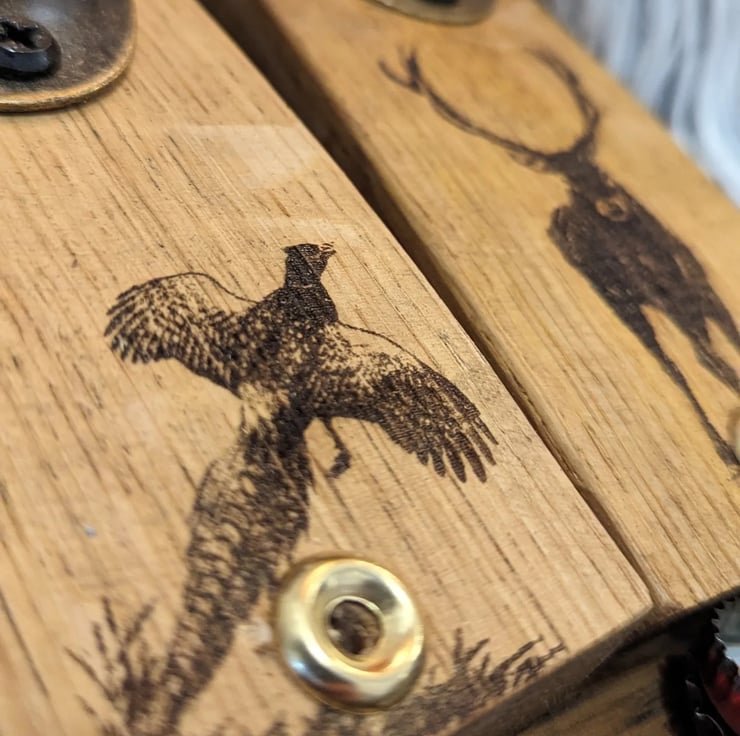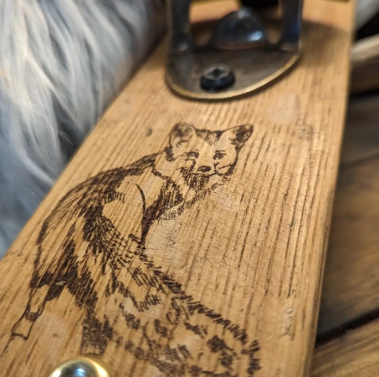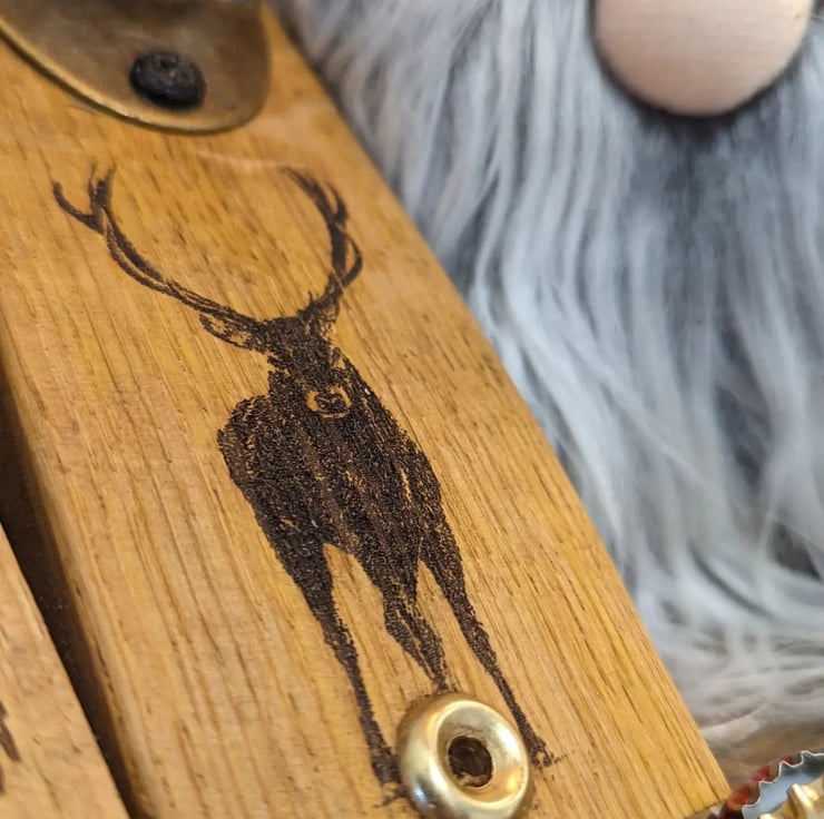 How about a laser-engraved woodland animal bottle opener? Using our barrel oak as a backing, these openers are quite uneak. If you want your own logo, design, or slogan, please let me know. I am happy to do any design at no extra cost.