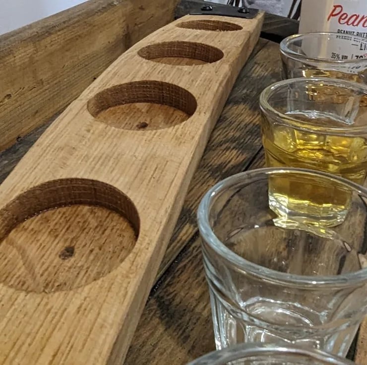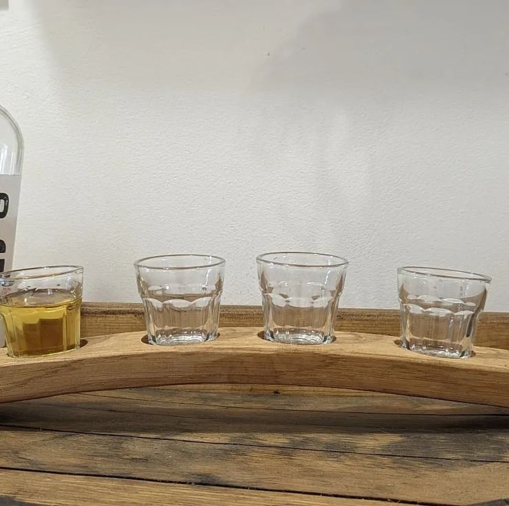 Serve your favourite shots in style with this oak shot board. Includes 4 glasses