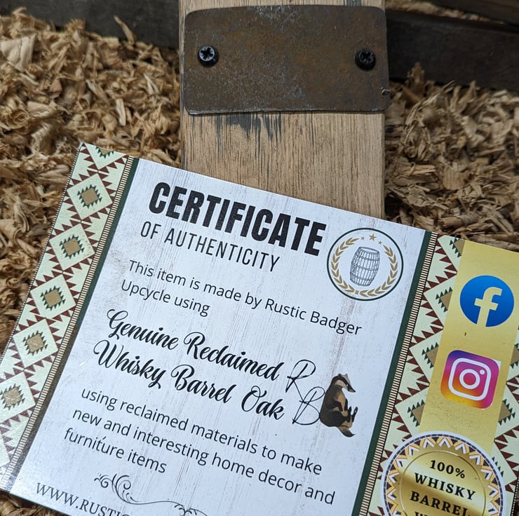 Is your purchase a gift? We send out a free certificate with every ordered about the item being made from a genuine whiskey barrel.