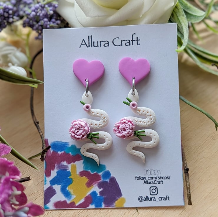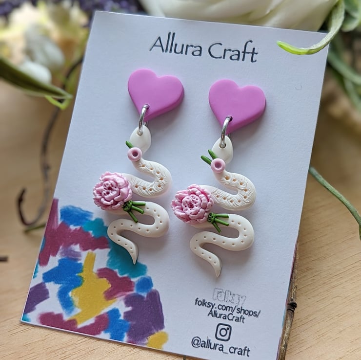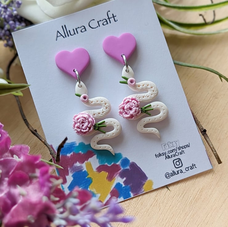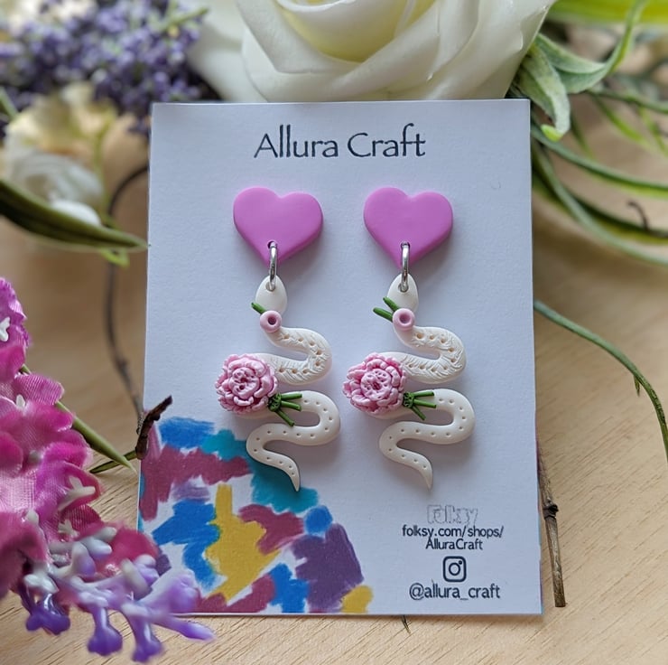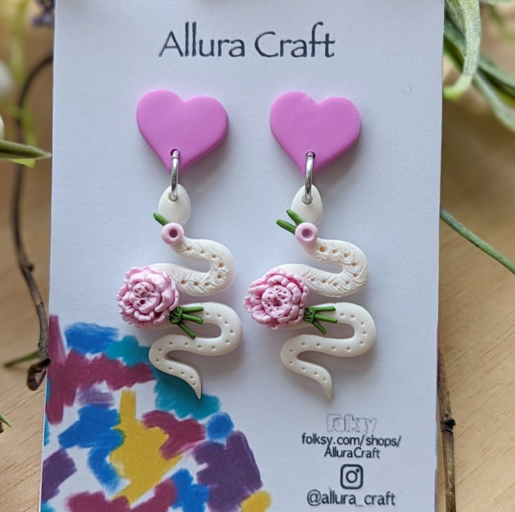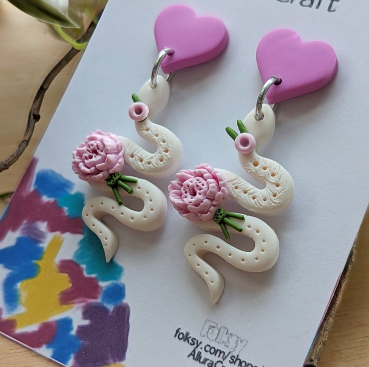 Attached to a white polymer clay snake, with abstract lines and dots markings