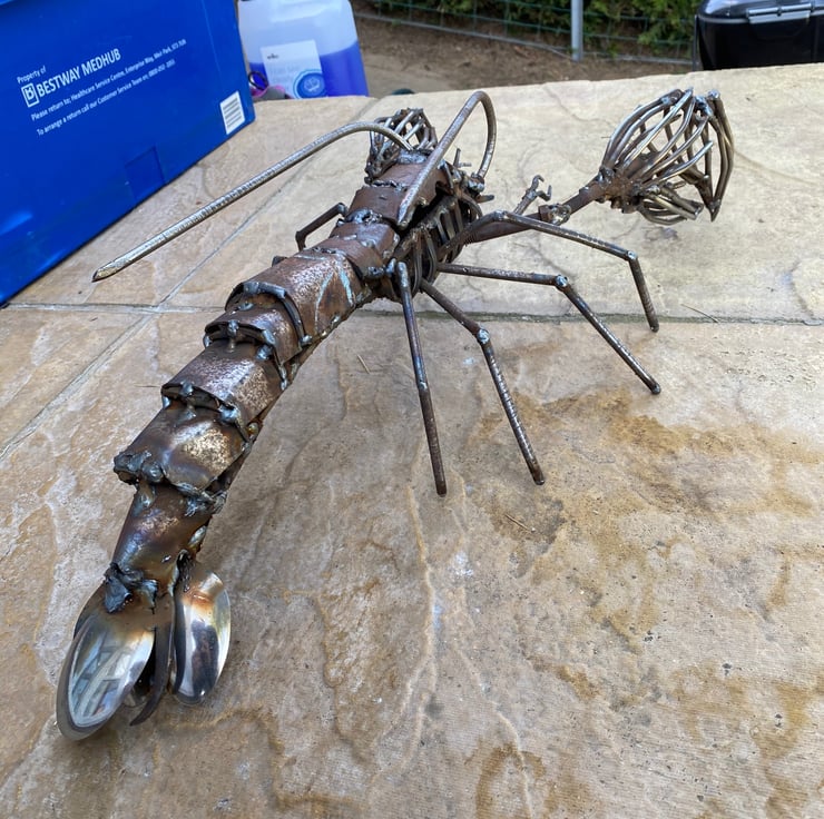 the scrap metal lobster. The genesis of this extraordinary piece of art can be traced back to a casual conversation with a scuba diving friend. After successfully creating a scrap metal crab, the notion to further explore the underwater world and create a lobster emerged. Fueled by the challenge and propelled by the desire to bring marine life to life in a novel way, the artist embarked on a journey that would see discarded metal pieces transformed into a stunning and unconventional representation of the deep-sea crustacean. Thus, the scrap metal lobster was born, a testament to creativity sparked by the depths of the ocean and the camaraderie shared among artistic minds.