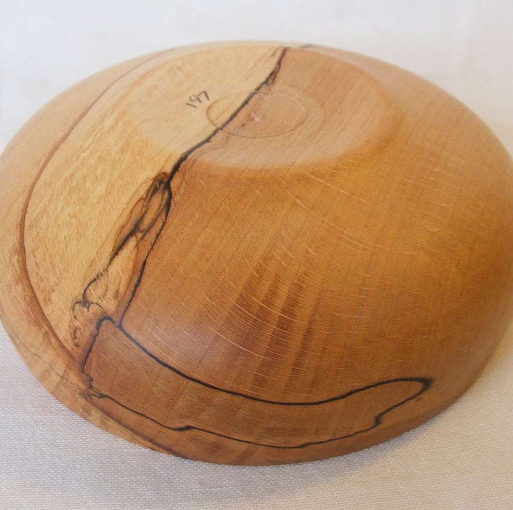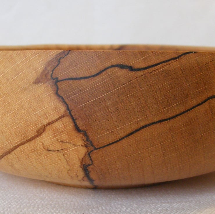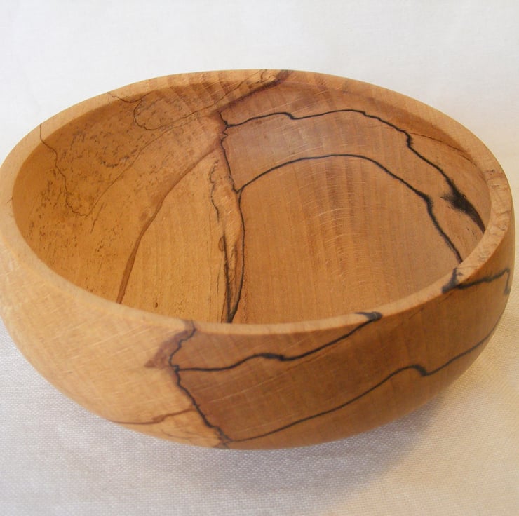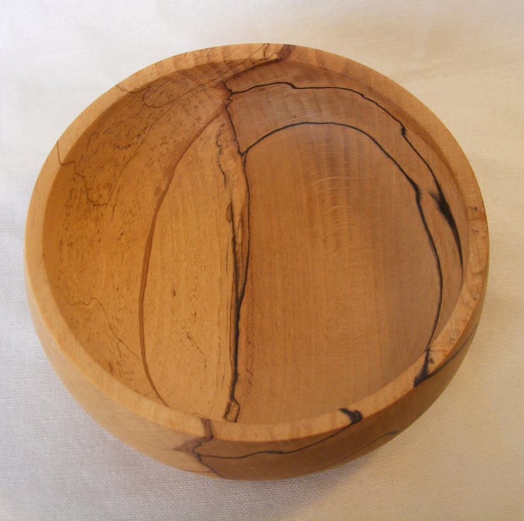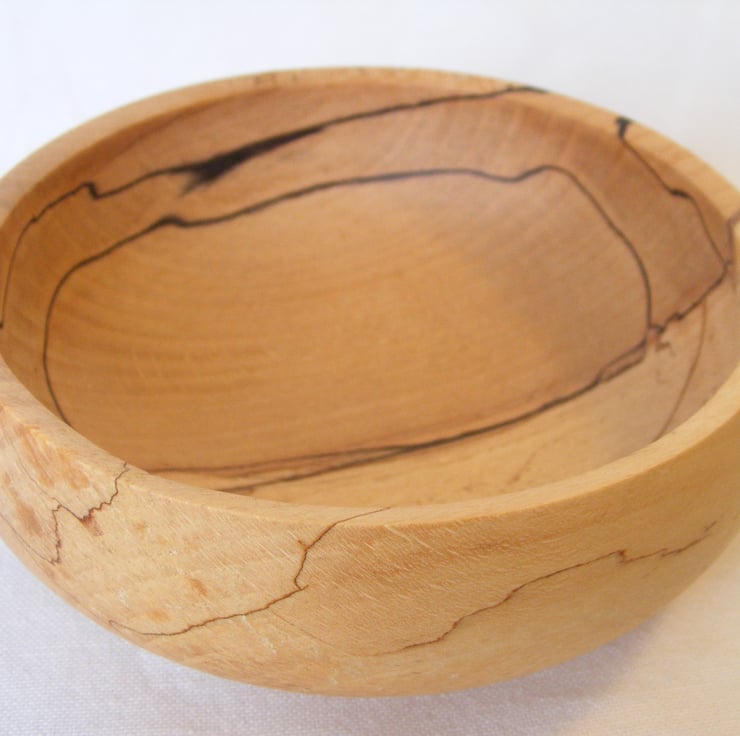 Spalted Beech bowl, 130 x 38mm (13 x 3.8 cm) Curved closed form spalted Beech bowl, it has dark spalting lines creating natural patterns over a half light half dark base colour.