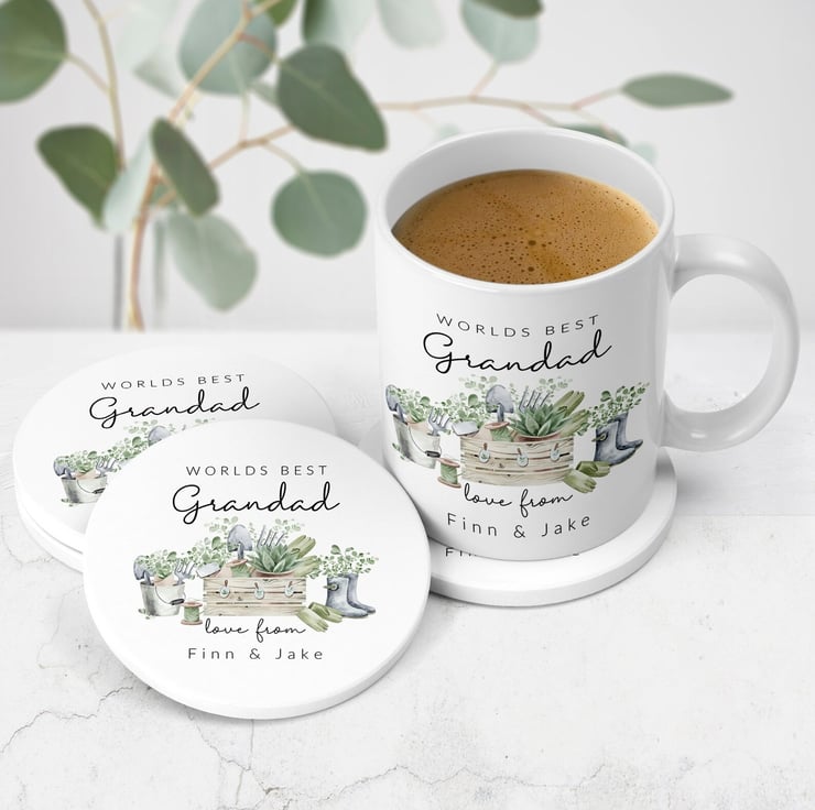 Personalised World's Best Grandad Personalised Mug And Coaster.