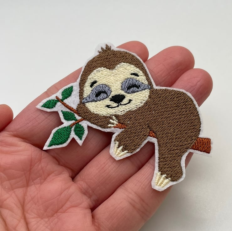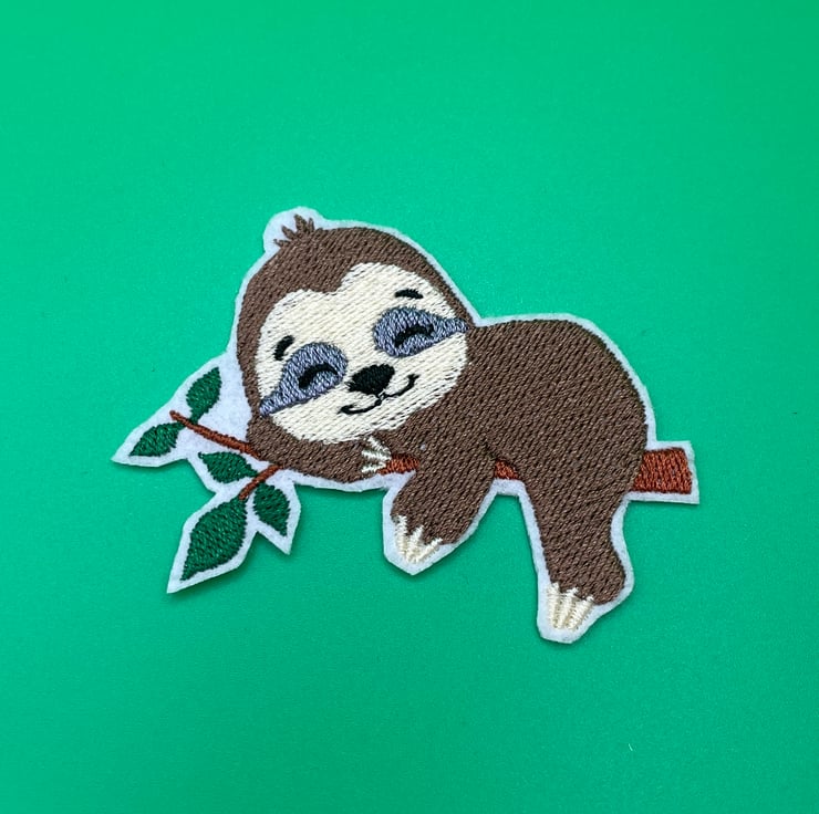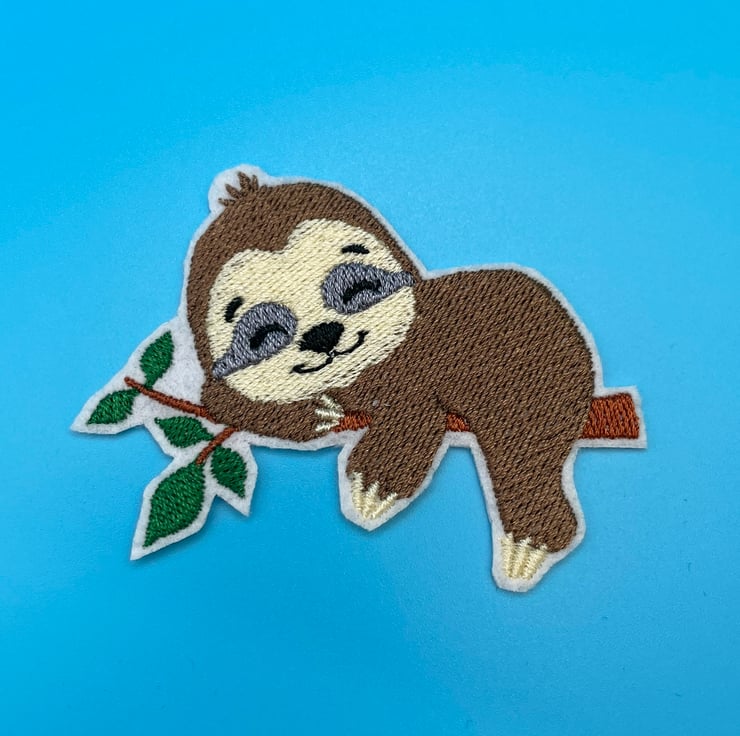 This is a very cute sloth embroidered patch, perfect for clothes, bags, blankets, pencil cases, etc - let your imagination run wild!