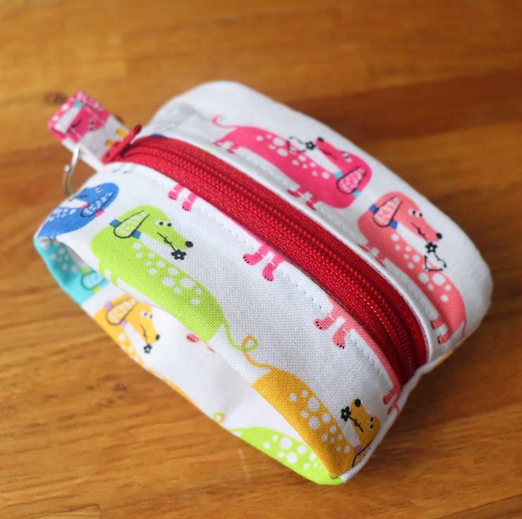 This pouch is perfect for your pooch I have installed a eyelet to pull the bags through so you do not have to pull the zip down to get to a bag it also has a split ring to attach to your dog lead or other item, it also comes with one free roll of 20 compostable poop bags, they are made from plant based material.
