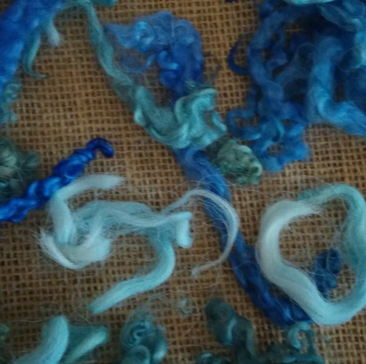 Our mix contains hand processed and hand dyed teeswater, whitewater, wensleydale and Devon/Cornwall longwool, masham, grey faced dartmoor and white faced dartmoor sheep