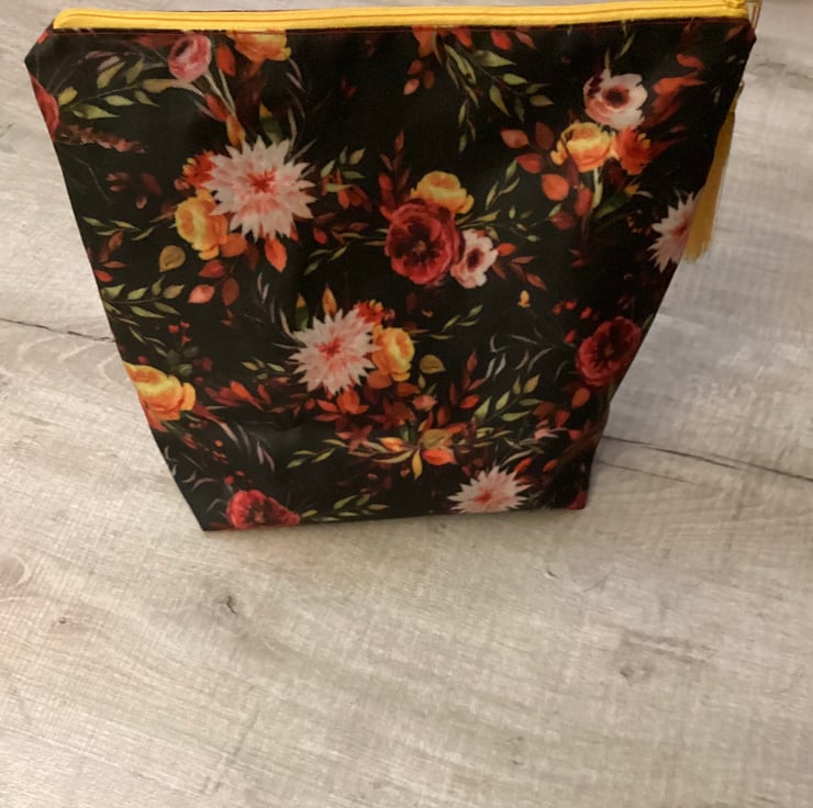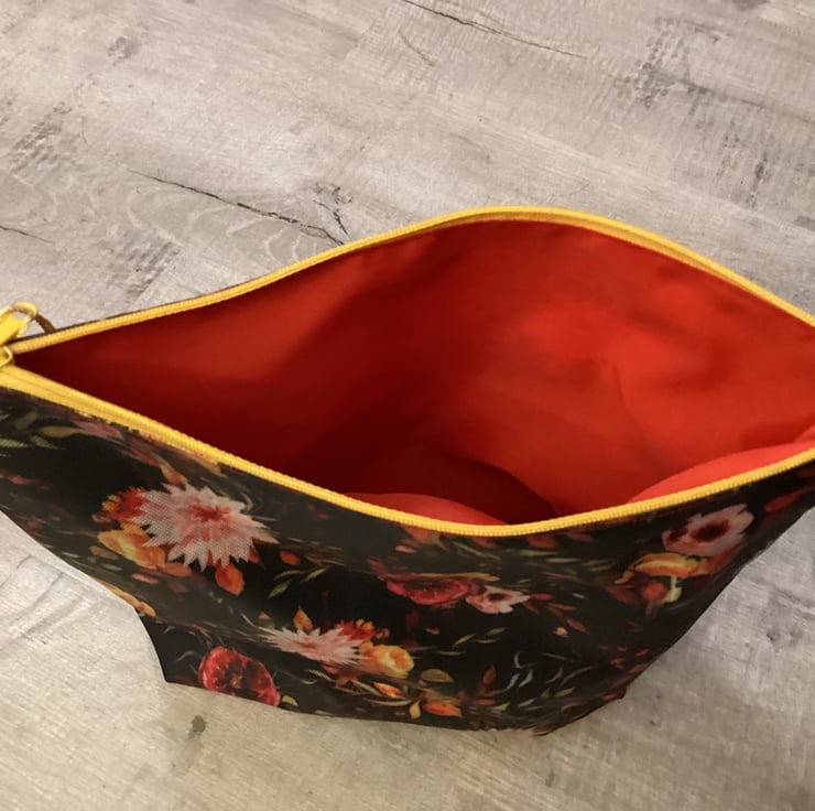 Ive made this unique bag from beautiful floral Waterproof Polyester Fabric and orange waterproof fabric for lining.