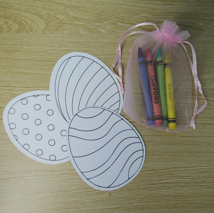 A great alternative to chocolate and sweets or an addition to an Easter egg hunt, this clear egg has been filled with stickers and colour your own card eggs to keep the kids entertained.