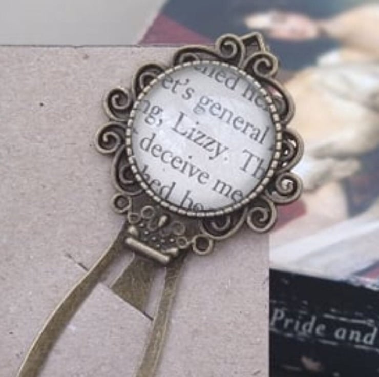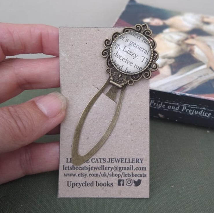 The perfect gift for any fan of Pride and Prejudice and Jane Austen. Lizzy Bennet the regency heroine from Pride and Prejudice, is captured forever in this bookmark made using an upcycled page from Jane Austen's classic novel.