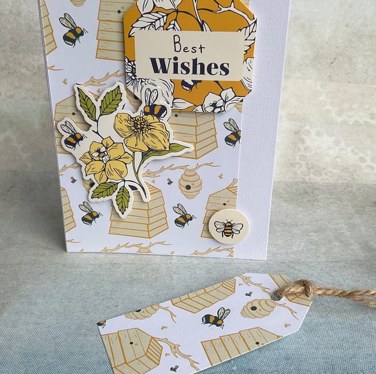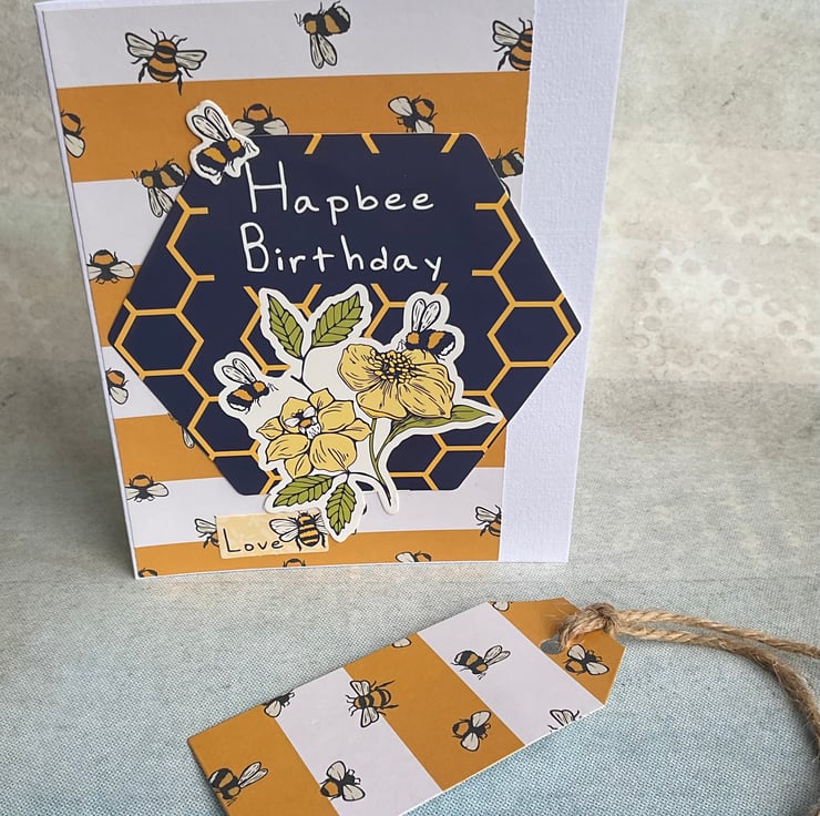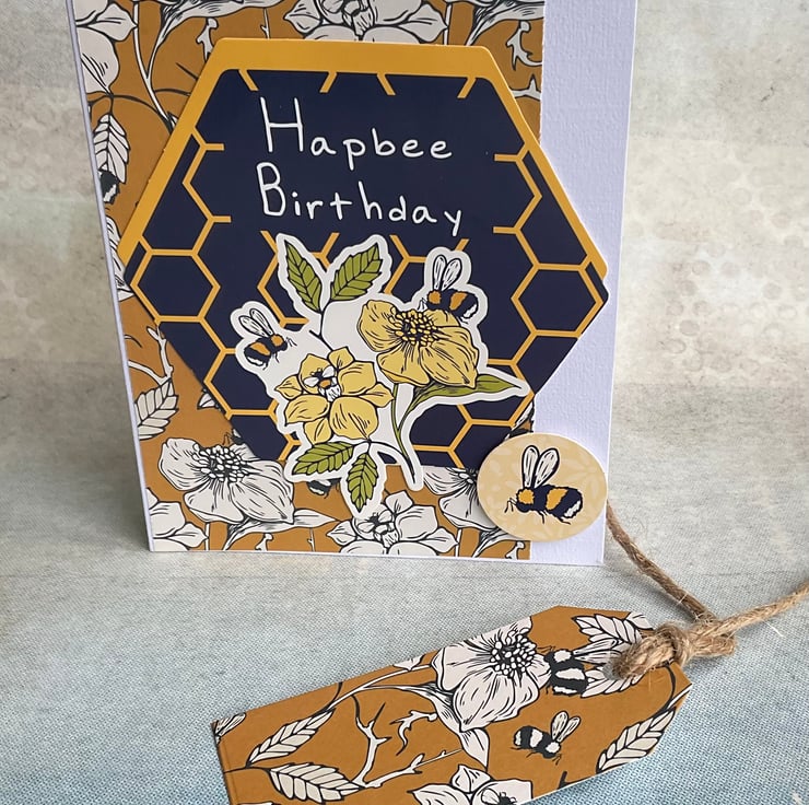 A set of five assorted birthday cards with coordinating gift tags perfect for a bee lover.