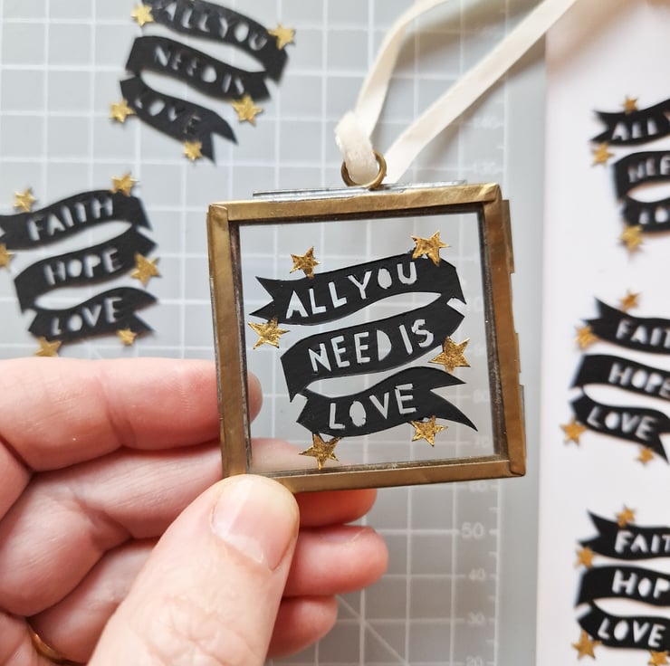 It comes in 2 designs: All You Need is Love, Faith Hope Love.