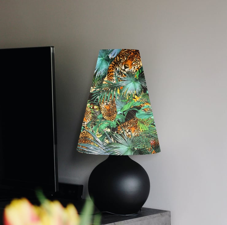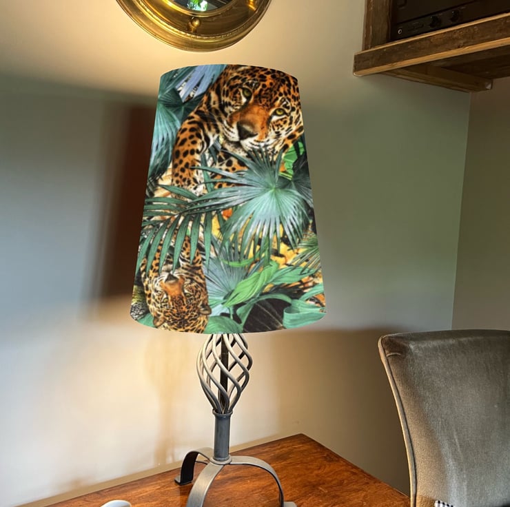 Extra tall cone lampshade in luxury Madagascar velvet paired with a white lining