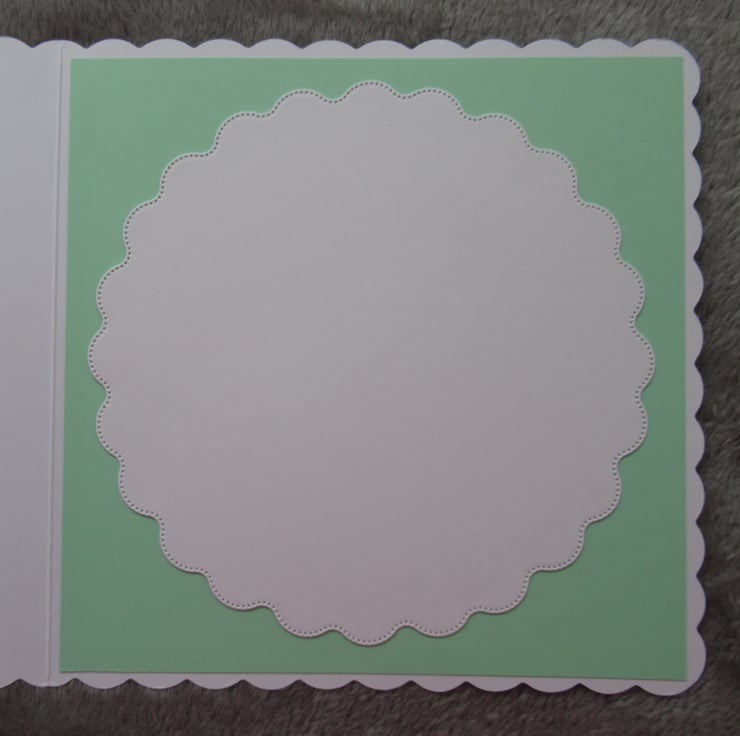 A pretty mint green card made using quality card stock. The focus of the card is a decorative parasol which has been die cut from silver rainbow mirror card which changes colour as the light catches it. This is is placed upon 3 decorative mats which I have die cut from coordinating card. A thank you very much greeting was added and the inside has been finished to coordinate but has been left blank for your own message.