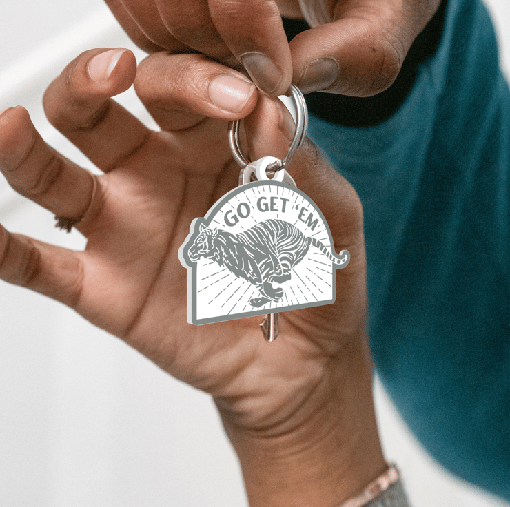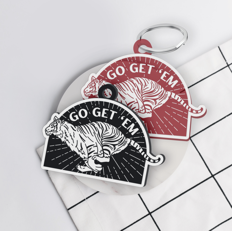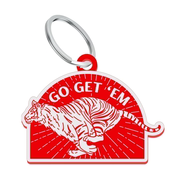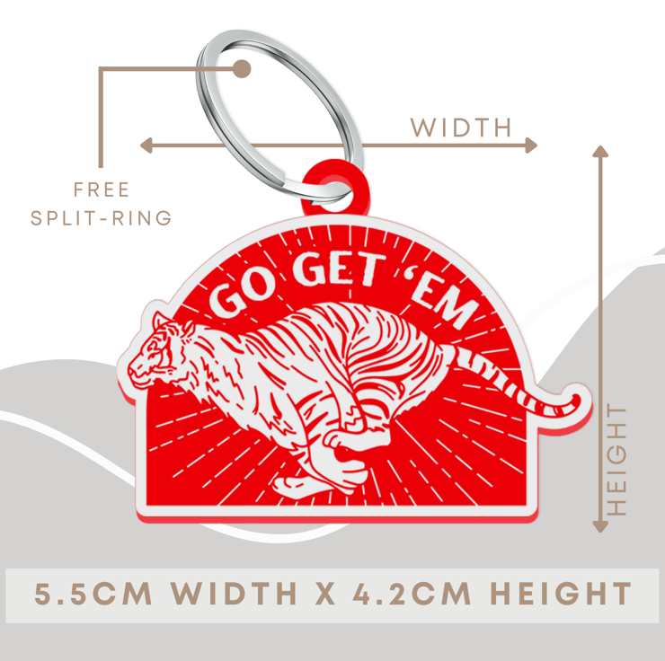 Unleash your inner tiger and seize the day with our 'Go Get 'Em' Tiger Acrylic Keyring! This powerful and motivational keyring features a fierce tiger illustration paired with the empowering phrase 'Go Get 'Em.' Carry a daily reminder of strength and determination with you wherever you go.