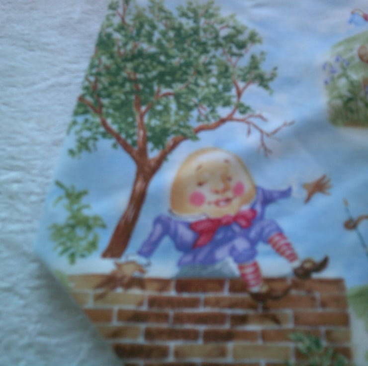 The fabric used for this dribble bib is of nursery rhymes including Humpty Dumpty and Mary had a Little Lamb.