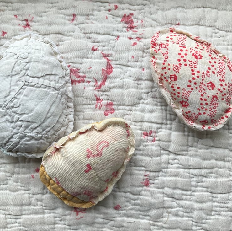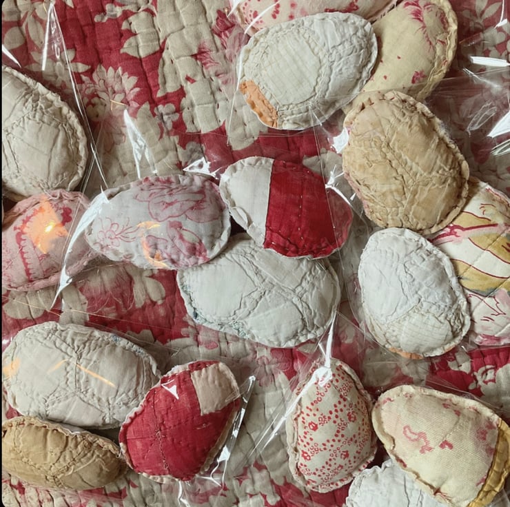 Some of the vintage quilts used may have some signs of wear commensurate with their age, which add to the charm of the finished pieces. Please do not buy if you prefer your vintage fabrics to be perfect.