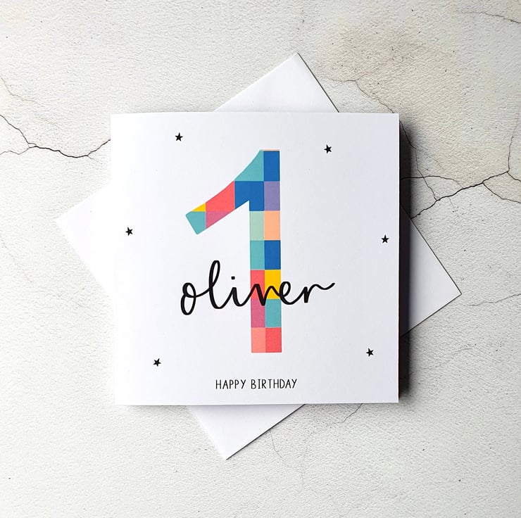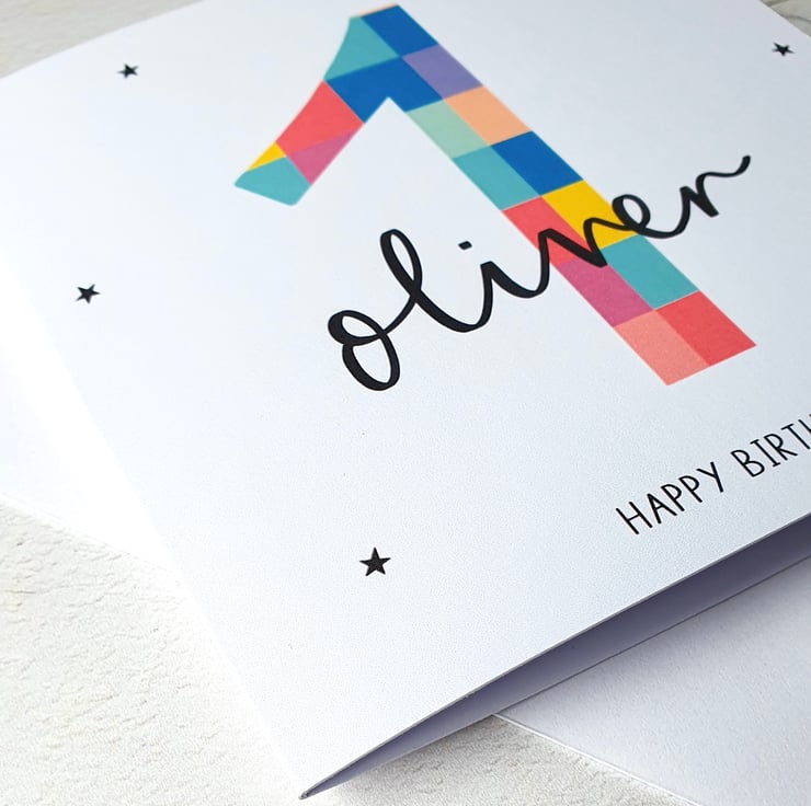 This 1st birthday card is beautifully simple yet colourful that's perfect to celebrate all the special birthdays! Personalised with name and age, this card makes a brilliant keepsake card.