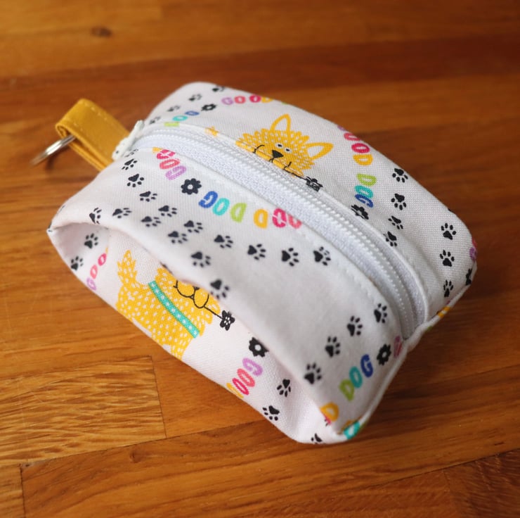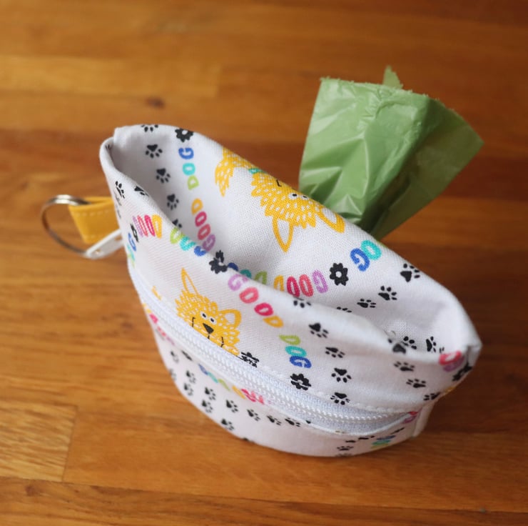 This pouch is perfect for your pooch made with good boy cotton fabric, I have installed a eyelet to pull the bags through so you do not have to pull the zip down to get to a bag it also has a split ring to attach to your dog lead or other item, it also comes with one free roll of 20 compostable poop bags, they are made from plant based material.