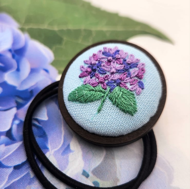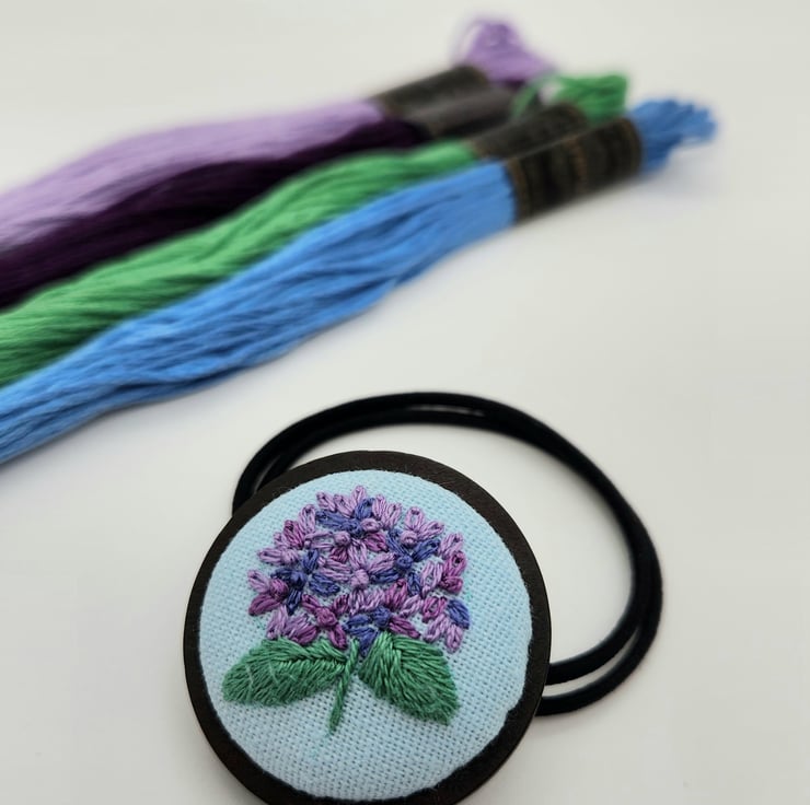 This lovely embroidery Hydrangea hair tie perfect for any occasion