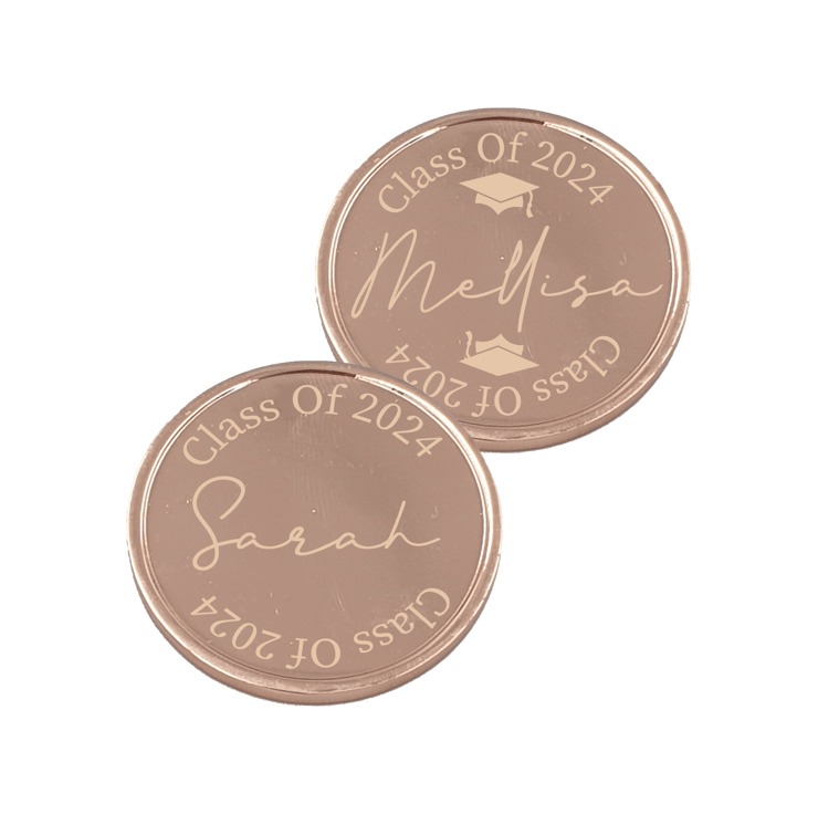 Commemorate your educational journey with our 'Class Of 2024' coin, a timeless keepsake personalised with your name. This coin symbolises the milestone achieved and memories made thorough your academic year. With a choice of adding a graduation hat these make it good for university or Secondary School.
