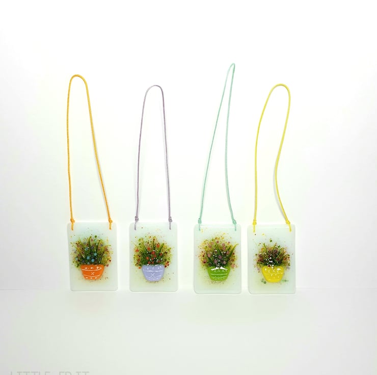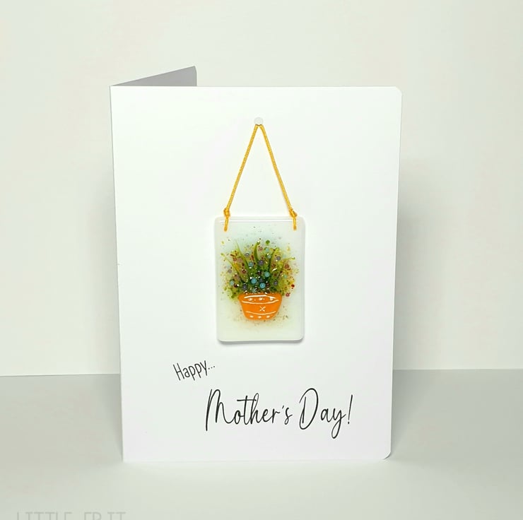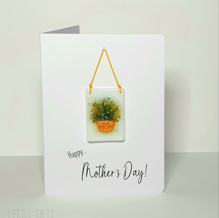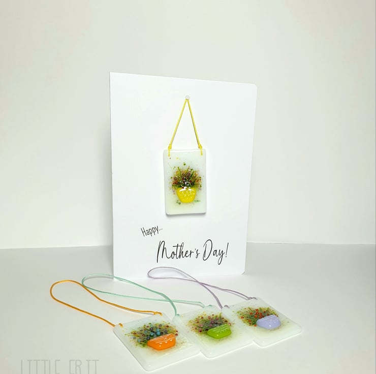 I've made these lovely Mother's Day Flower Pot Keepsake Cards! The Keepsake has "Mum" written secretly on the reverse. Card is 300gsm in white with a Handmade Fused Glass Flower Pot Suncatcher on the front. The Suncatcher can be displayed in a window, mirror or a wall. A lovely card with a Keepsake Gift for a special mum! The card comes with a White Envelope tied with a ribbon and tag.