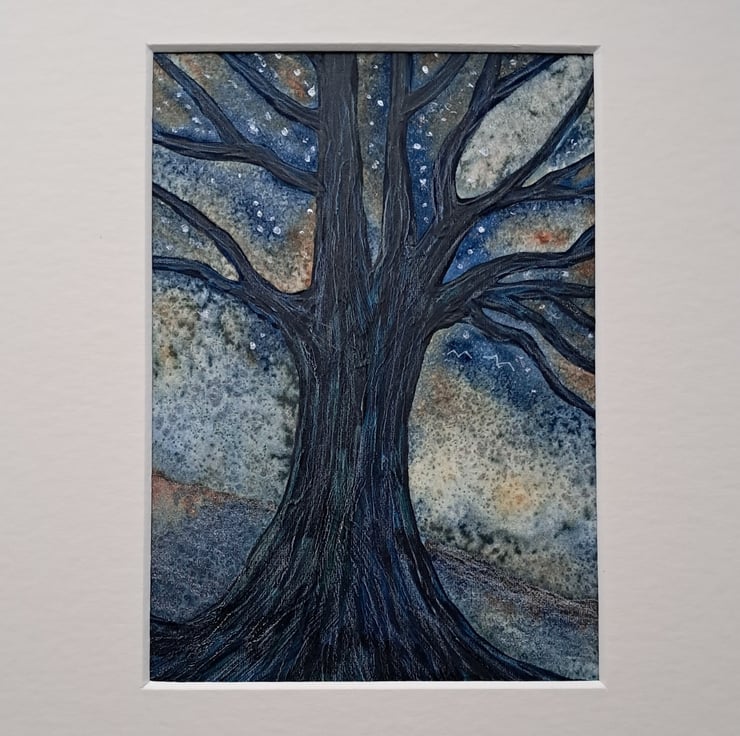In The Winter Bleakness is an original painting. It was triggered by the need to look beyond the bleak, dark days for seeds of light and hope. It was created mostly with watercolours with a wee touch of inktense and acrylic.
