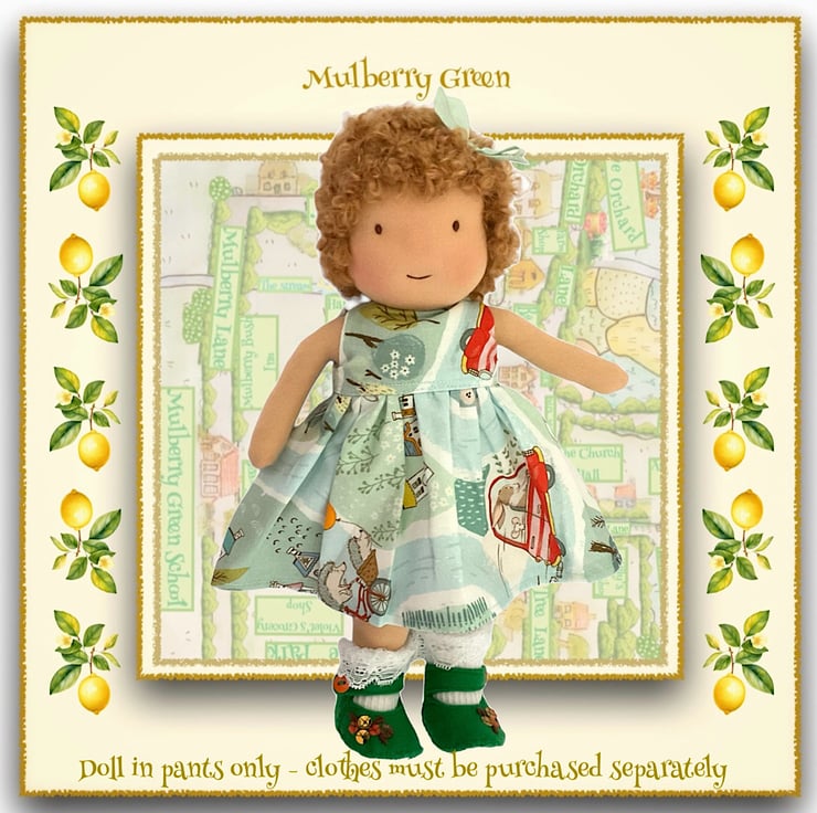 Mulberry Green is all about a time, now gone, but not so very long ago, when children had a great deal of freedom to explore their surroundings and use their imagination in play. A time when the world moved at a slower pace and things were made to last. To celebrate this heritage, wherever possible, I use traditional crafts and materials to create my dolls and outfits.