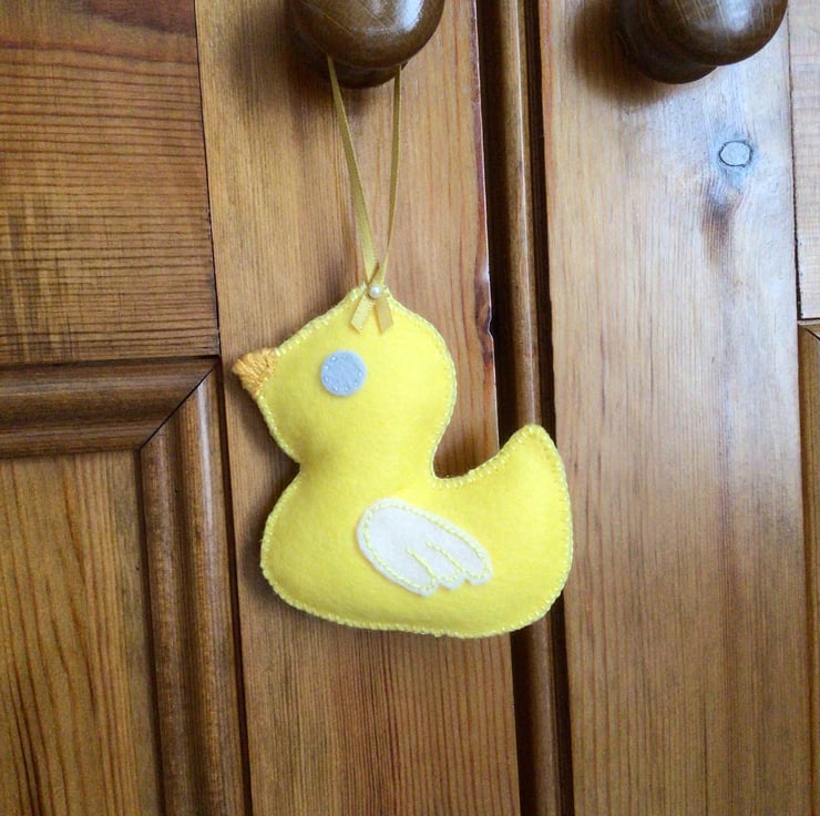 Felt, hanging decoration, easter chick for a springtime display.