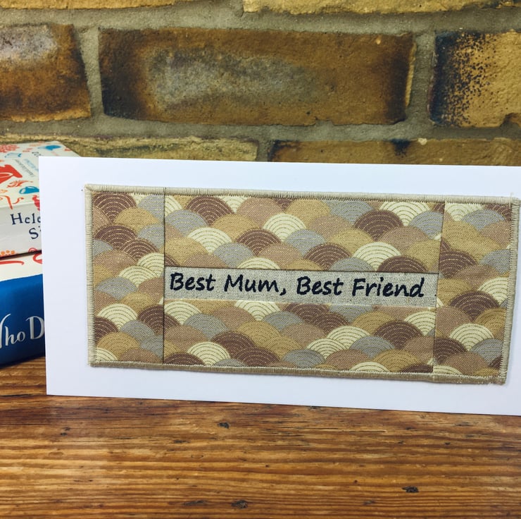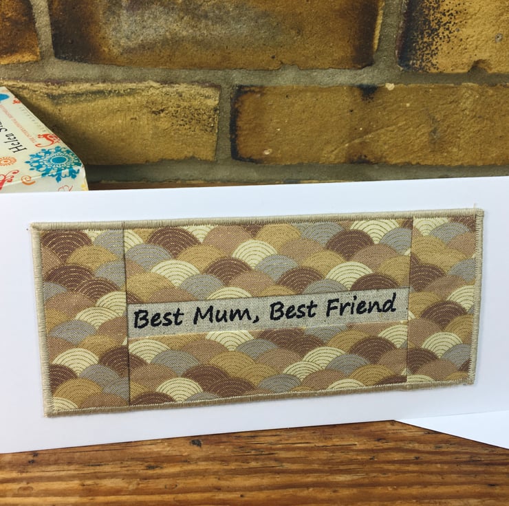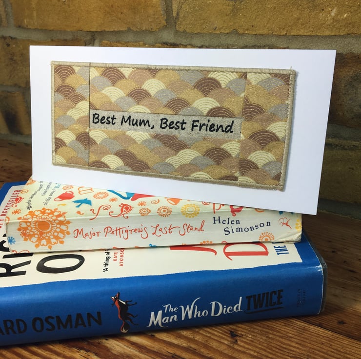 Attached to the card is a delightful handmade fabric bookmark with the sweet message "Best Mum, Best Friend" to celebrate the special bond you share with your mum and best friend – a perfect gift for your Mum's birthday or Mother's Day.