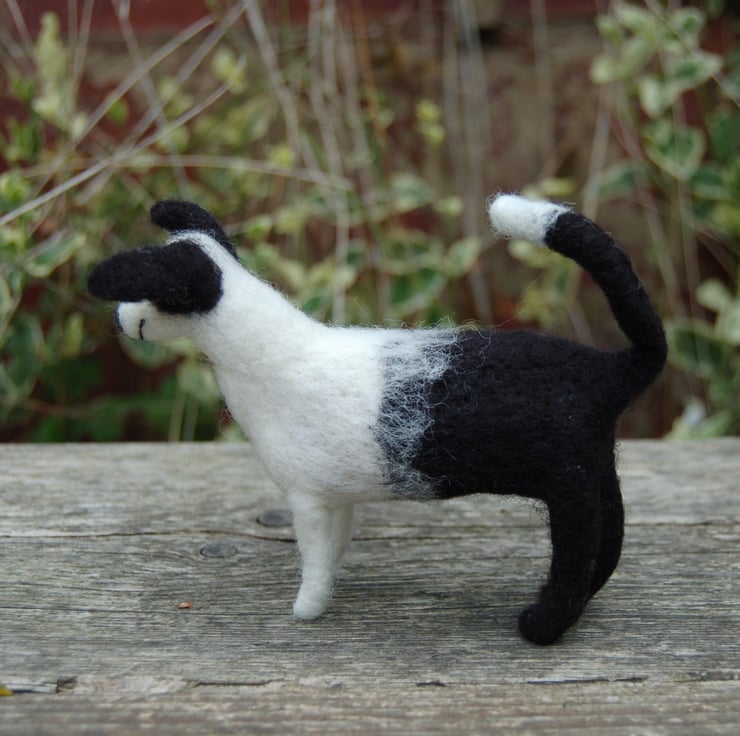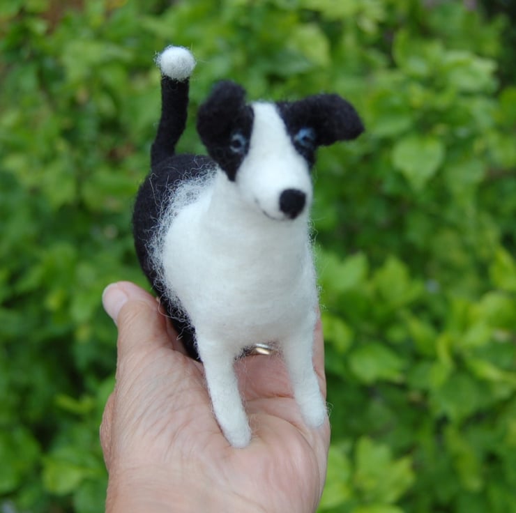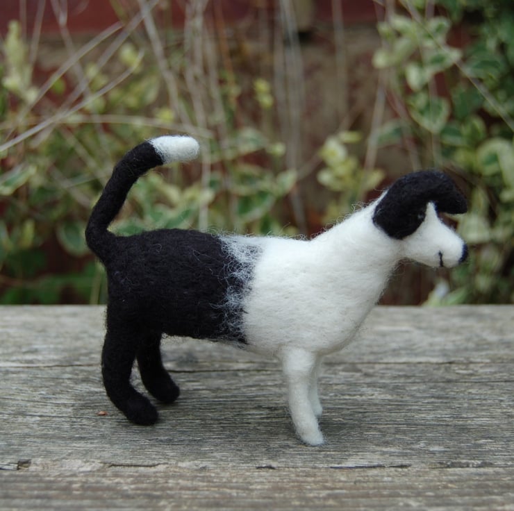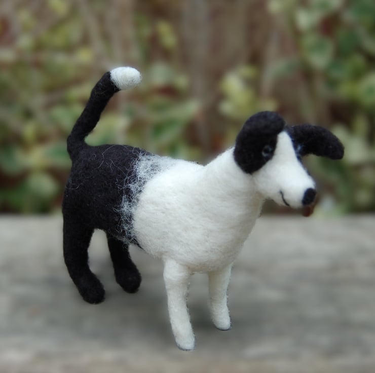 I've made this wool sculpture using the needle felt method of jabbing wool fibre with a sharp needle. The dog has internal wires for stability.