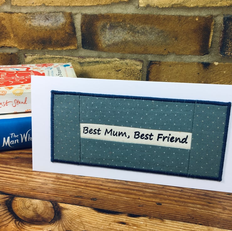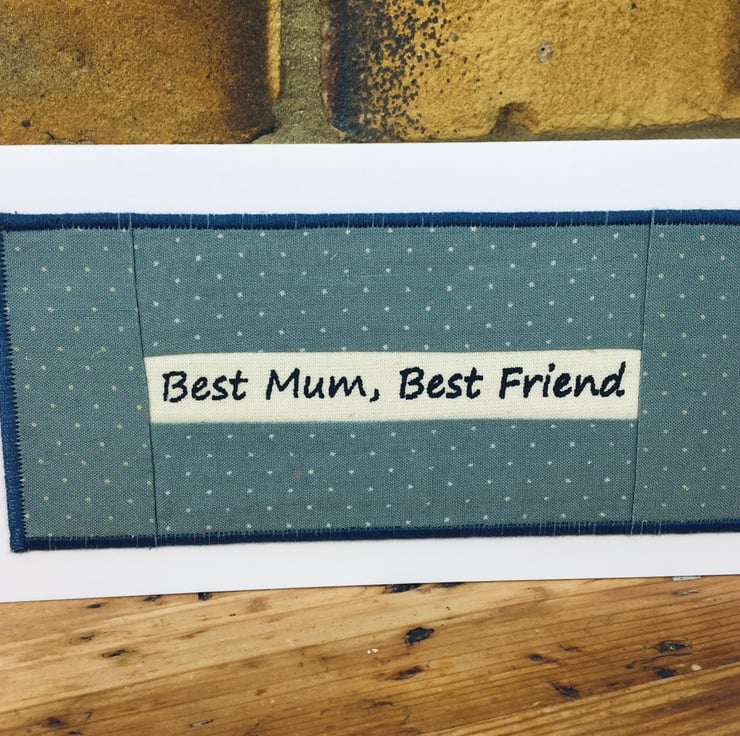 Attached to the card is a delightful fabric bookmark with the message "Best Mum, Best Friend" to remind her just how she is cherished .