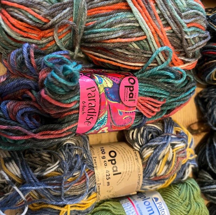 It's not just all about fabric - beautiful balls of knitting wool should get a look in, too. This gorgeous collection is made up of around 30 balls of mainly self-striping sock yarn, all of them at least 70% pure wool and largely 4-ply. Think of the socks, gloves and hats you could make out of this fabulous lot. Includes well-known sock wool brand Regia, but there are plenty of other rarities in there waiting to be discovered.