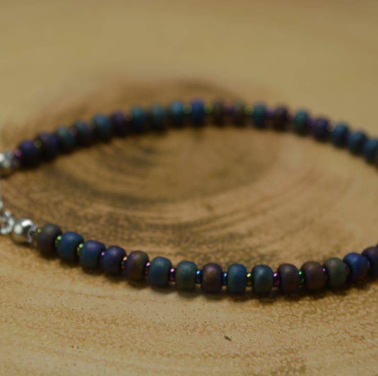 The matt metallic seed beads (large and small) do have different colours to them depending on how the light hits them. You can see dark green, purple, dark blue and even yellow colours.