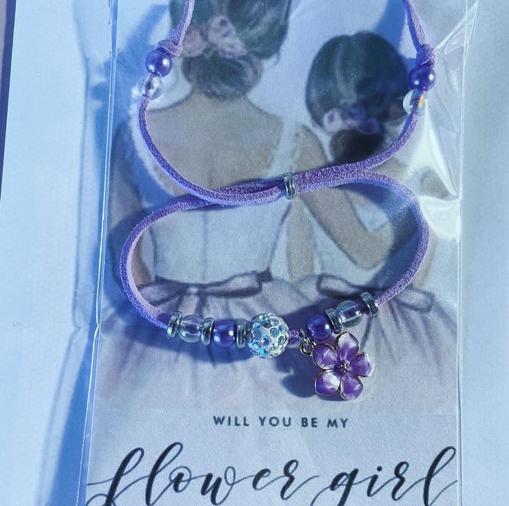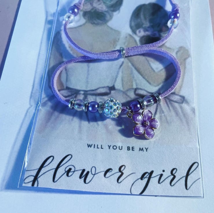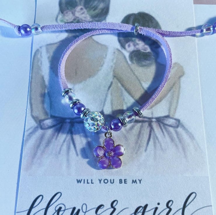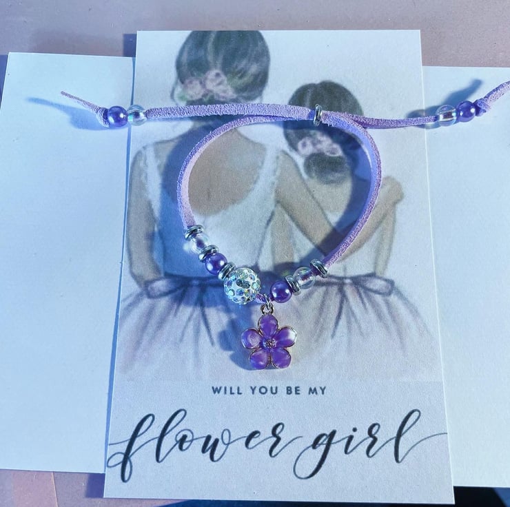 Flower girl flower charm gift bracelet bridal gift suede effect corded bracelet