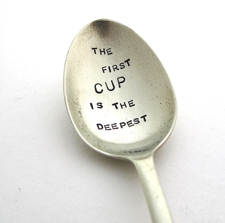 Personalise a vintage coffeespoon (approx. 12cm long) with up to 25 letters of your choice. Please click the orange 'choose options' button and input your required text into the box. You can include numbers, punctuation, and little hearts but please note that each of these will count as a letter - each one has to be whacked into the spoon by hand.