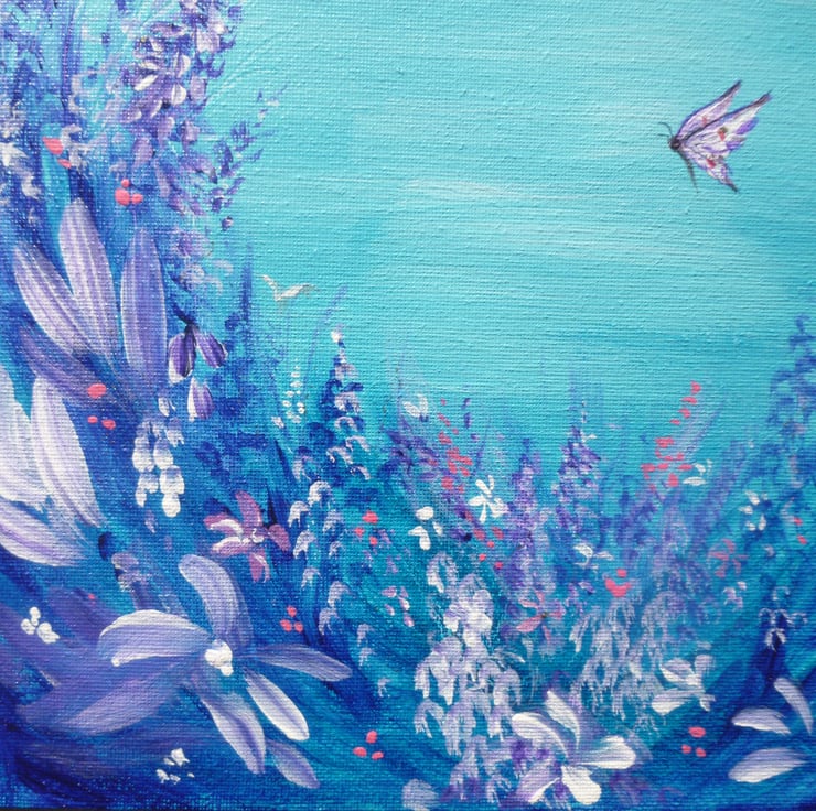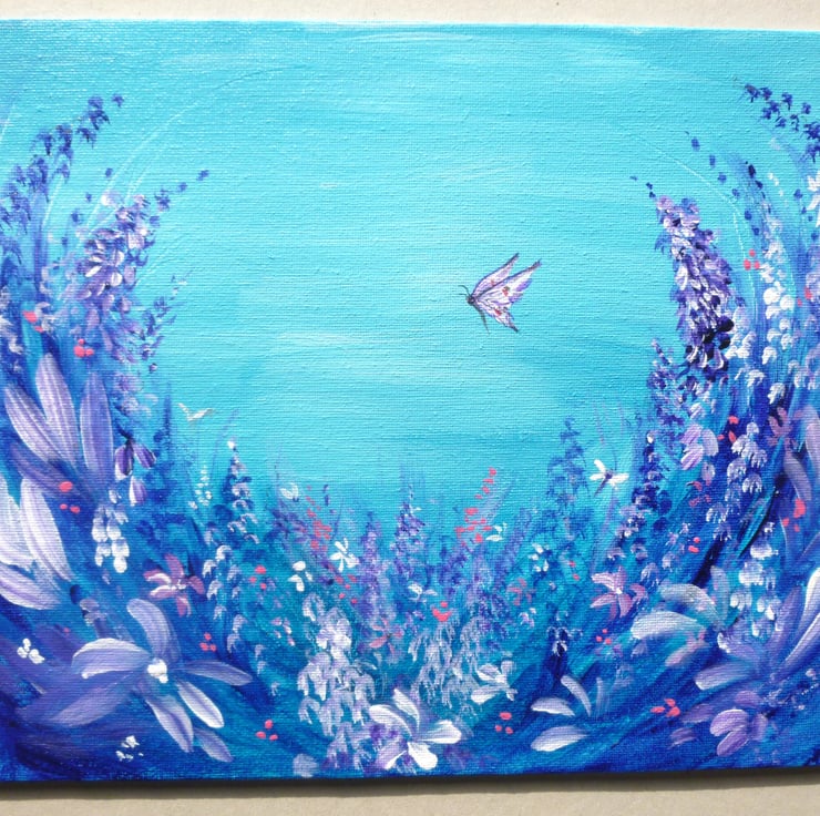 original art floral butterfly glitter acrylic painting ( ref F 819 A4 )