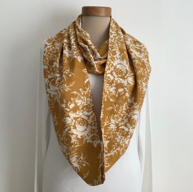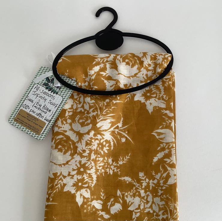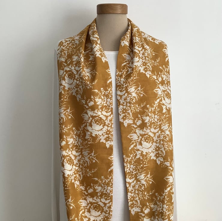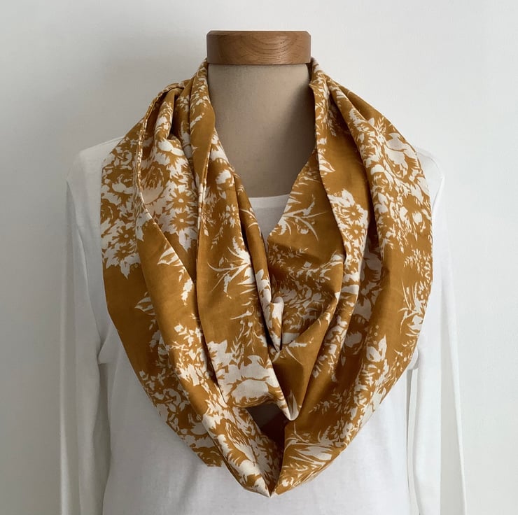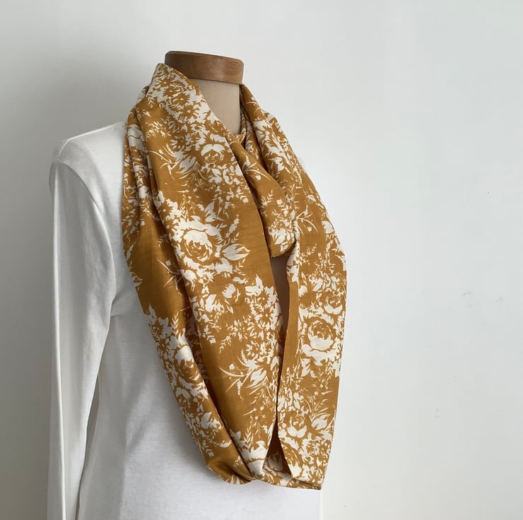 I have designed and made this lovely , lightweight infinity / tube -like scarf / skinny scarf ' Big Bloom ' with those in-betweeny months in mind ! I've used a deliciously soft ,cotton lawn fabric, with enough drape to loop twice ,this accessory will take you through pretty much every season ! .