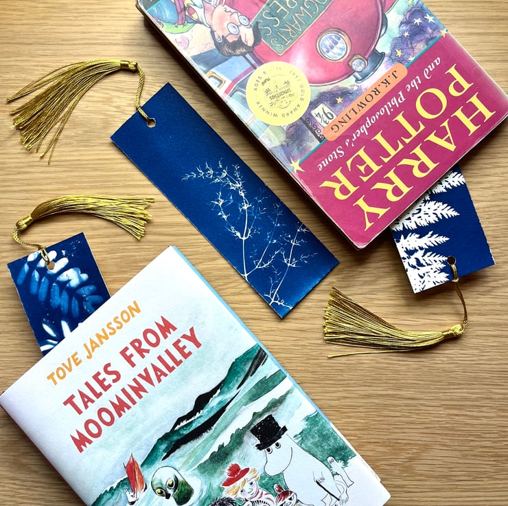 - there may be some markings on the back of the bookmark left from the process of creating and developing the cyanotype