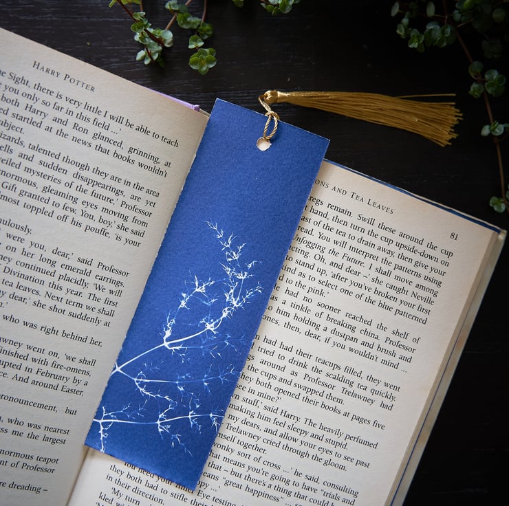 This bookmark has been lovingly handmade using the cyanotype process to create an original and unique design. This unique bookmark features the leaf of a fennel plant which has such beautiful dainty detail.