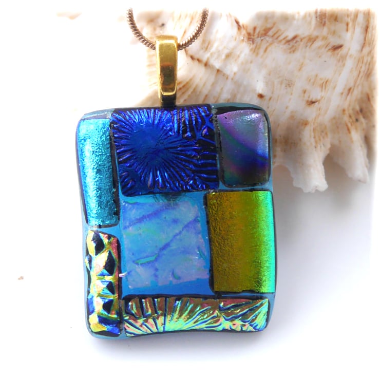 I've designed this as a patchwork which fits so beautfiully with the beauty of the different types of dichroic glass,