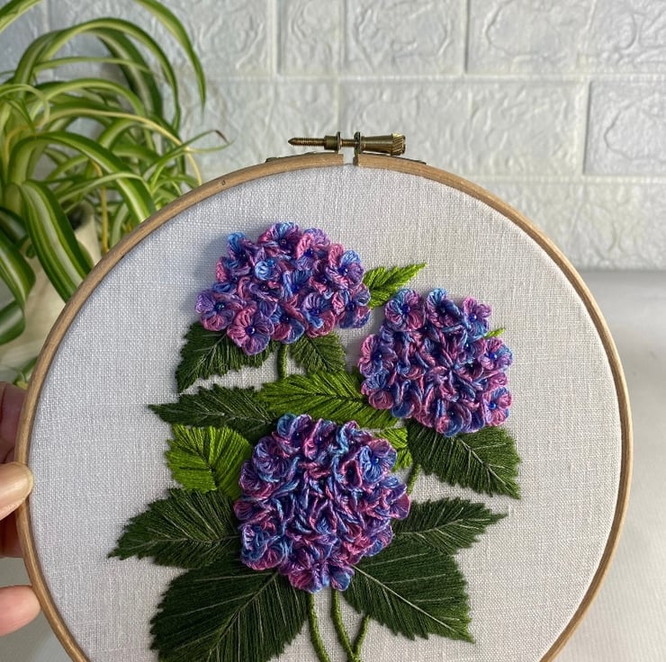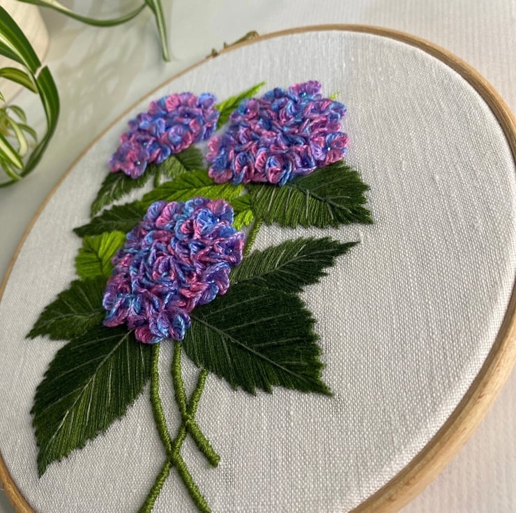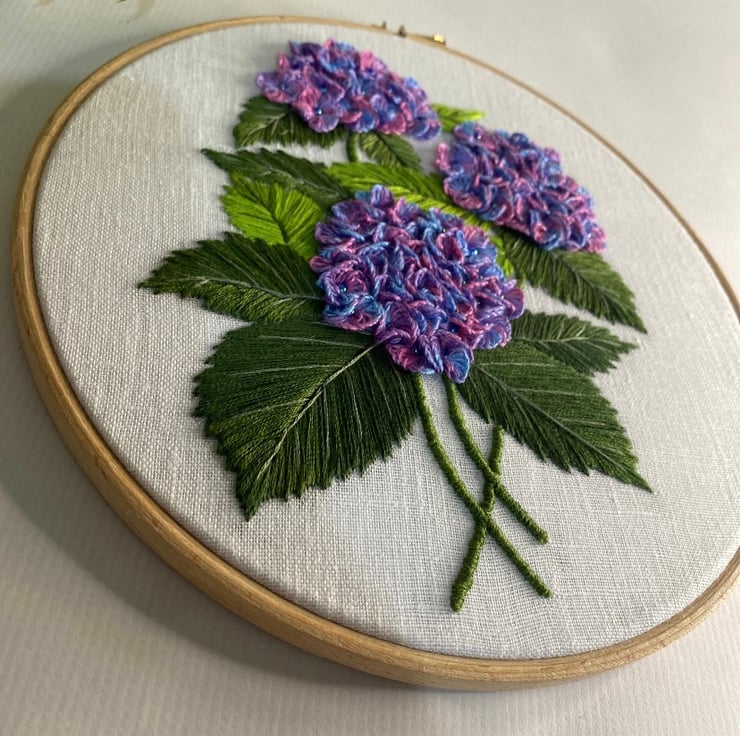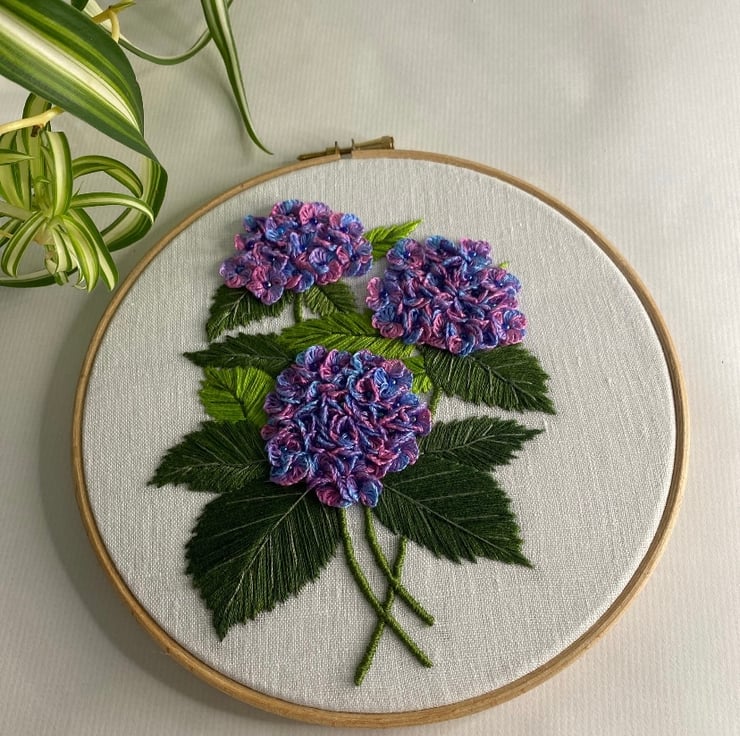This botanical embroidery hoop art features hydrangea which inspired by my little summer garden .This has been lovingly designed,handstitched and finished by me in a pet free and smoke free environment.
